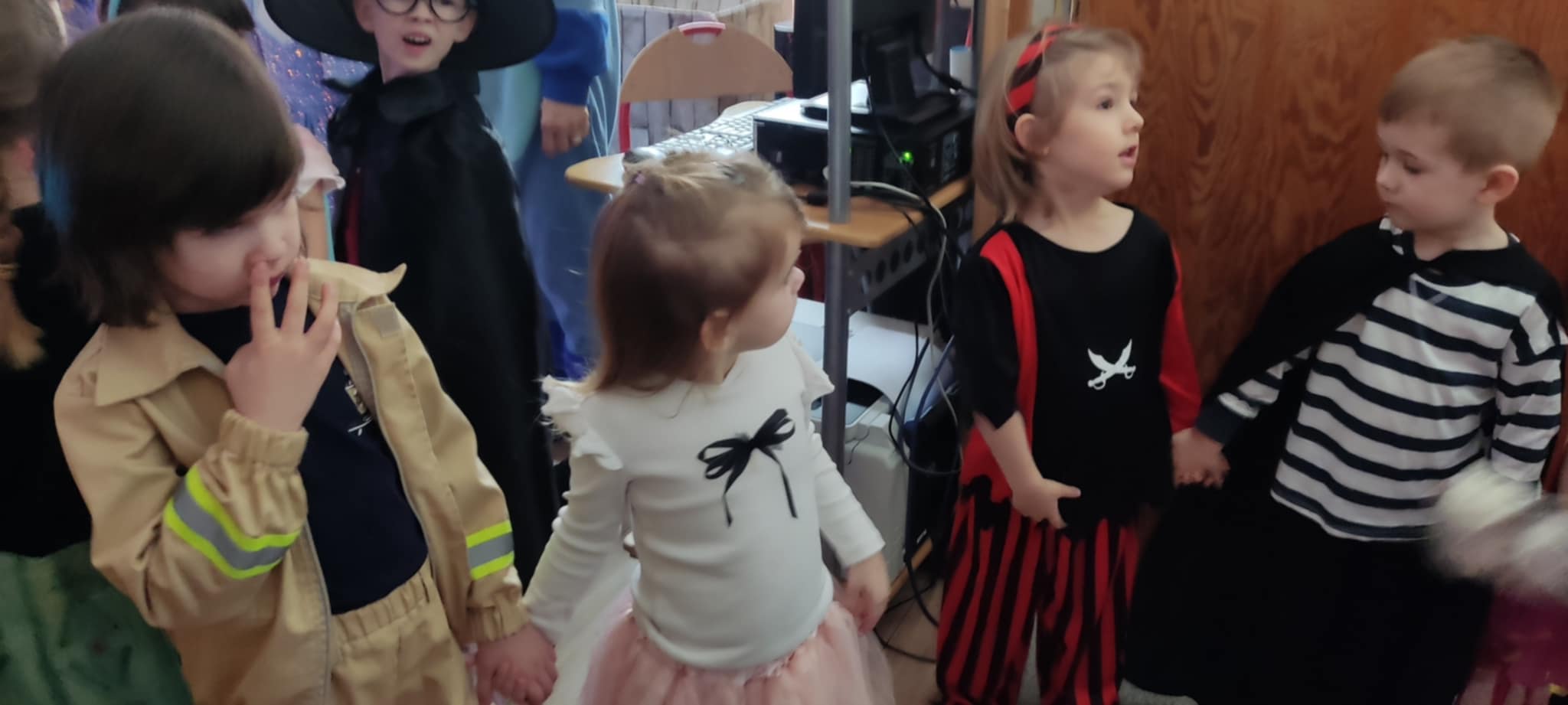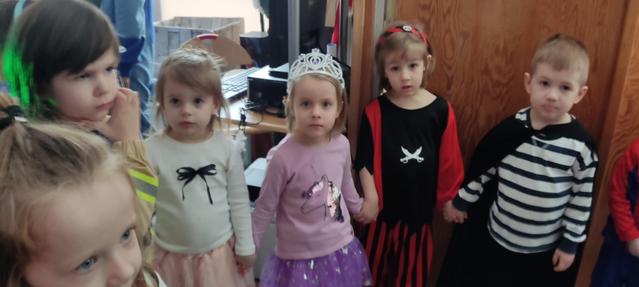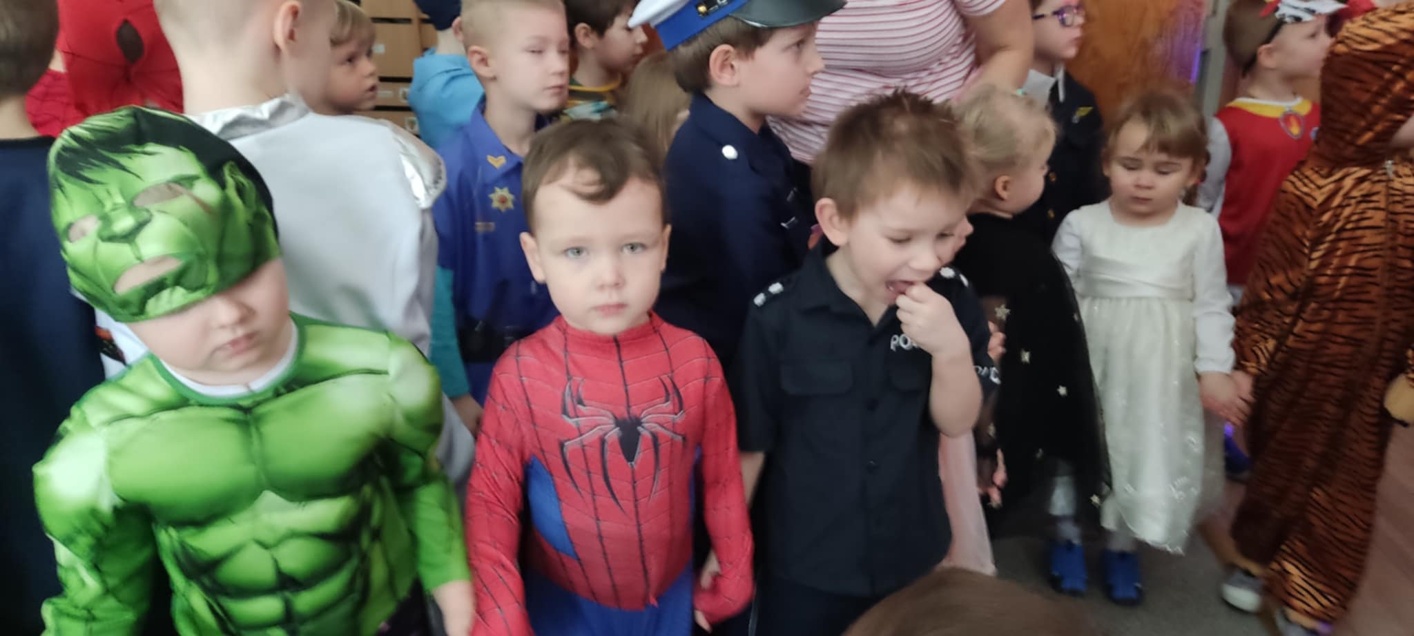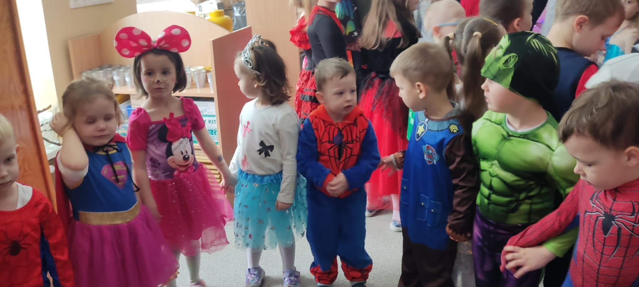 Przedszkolaki przyszły przebrane w piękne i pomysłowe stroje. Wśród nich można było spotkać księżniczki, superbohaterów, zwierzątka, policjantów, strażaków oraz wiele innych bajkowych postaci. Każde dziecko miało okazję zaprezentować swój strój podczas wspólnego pokazu, który wzbudził wiele uśmiechów i oklasków.