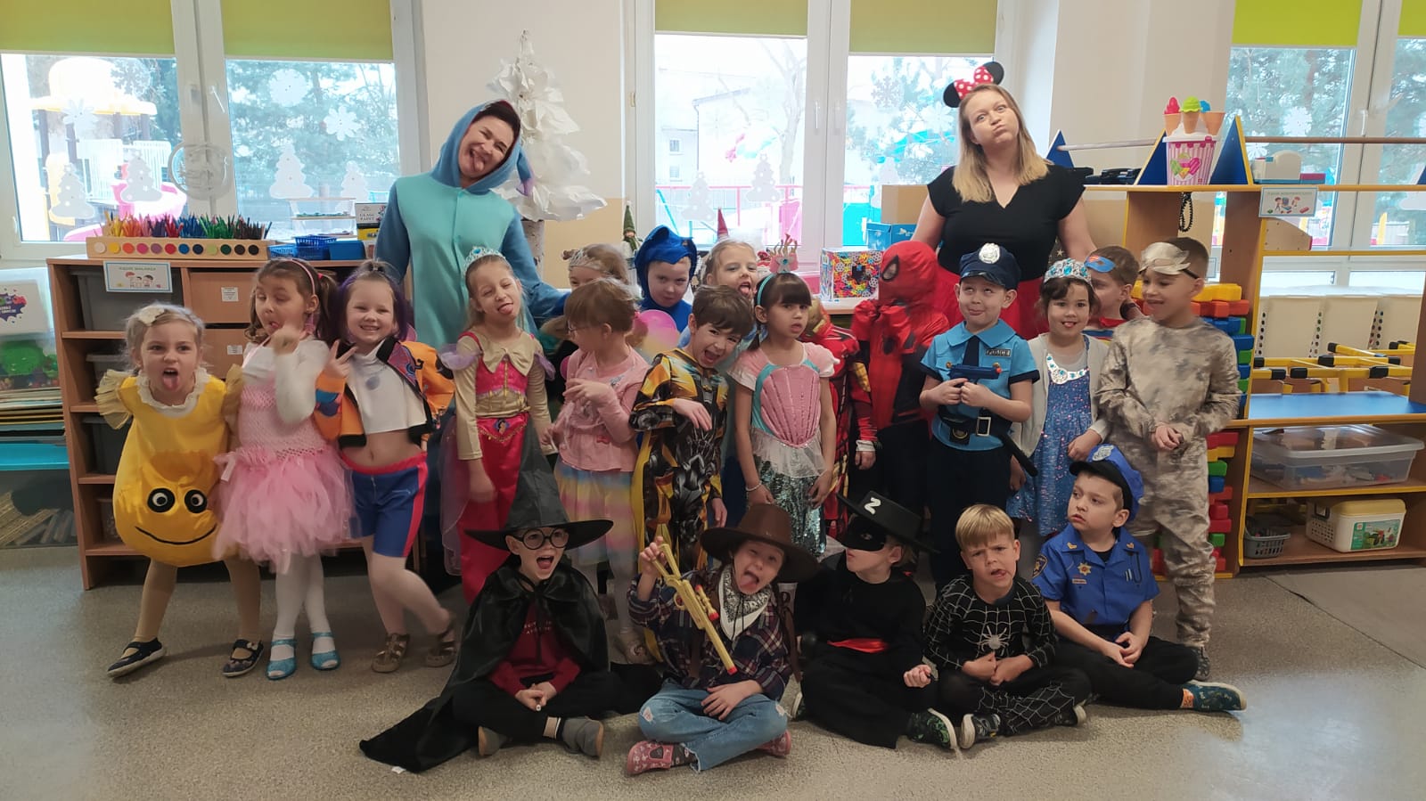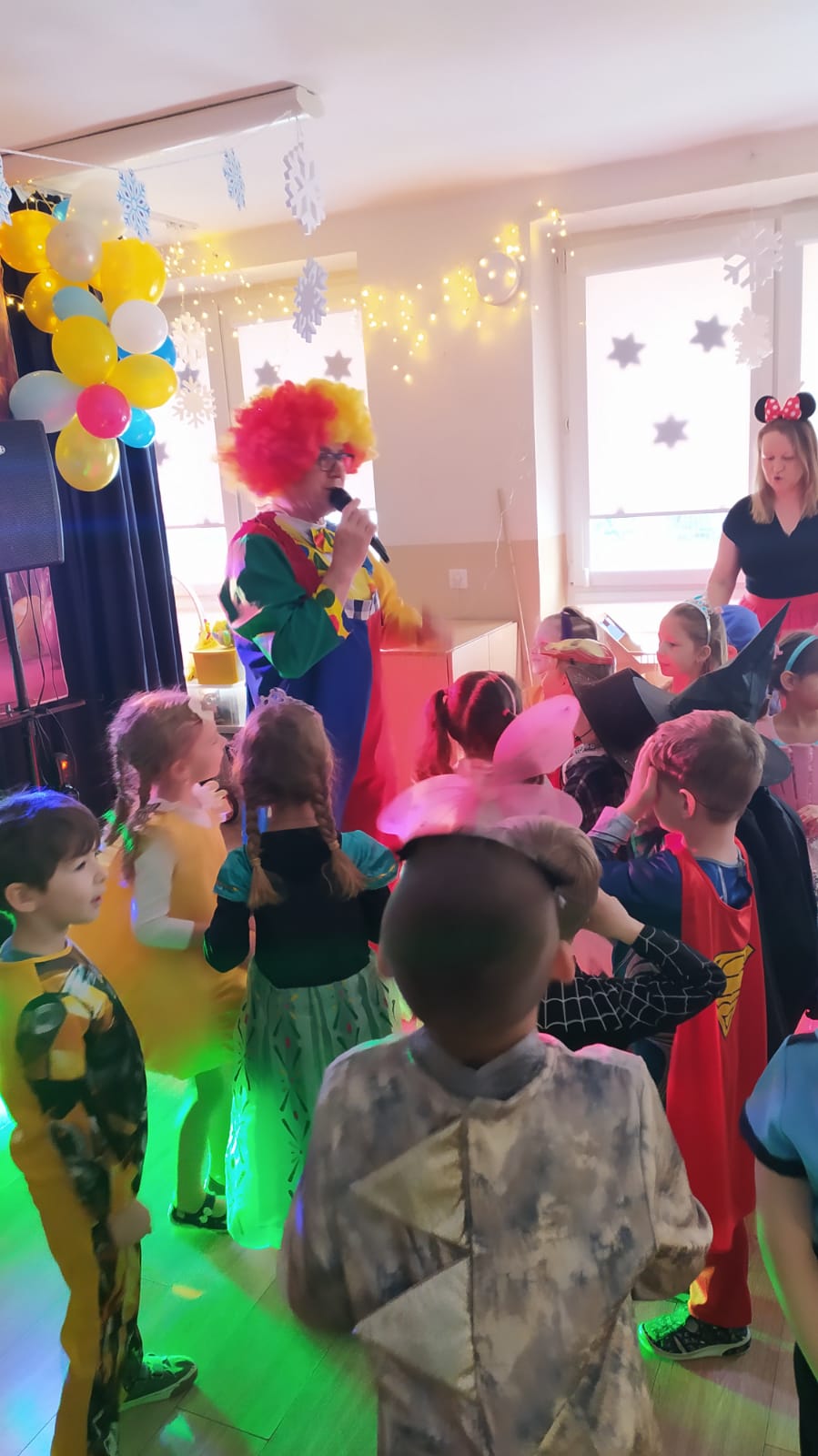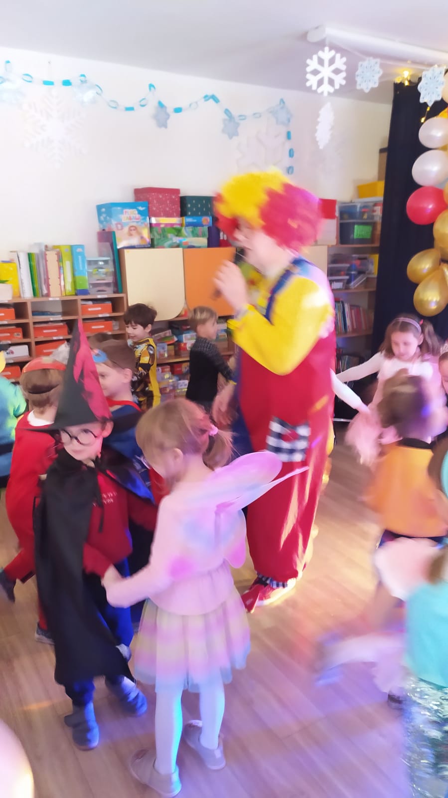 W naszym przedszkolu odbył się wyjątkowy Bal Karnawałowy, na który dzieci czekały z ogromną niecierpliwością. Już od samego rana w salach panowała radosna atmosfera, a kolorowe dekoracje, balony i serpentyny wprowadzały wszystkich w prawdziwie karnawałowy nastrój. Przedszkolaki przyszły przebrane w piękne i pomysłowe stroje. Wśród nich można było spotkać księżniczki, superbohaterów, zwierzątka, policjantów, strażaków oraz wiele innych bajkowych postaci. Każde dziecko miało okazję zaprezentować swój strój podczas wspólnego pokazu, który wzbudził wiele uśmiechów i oklasków.