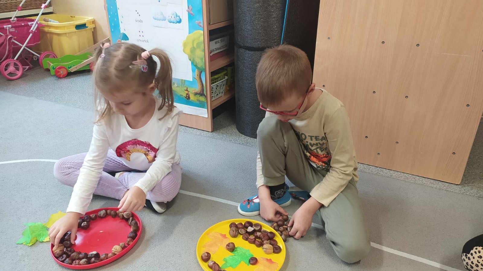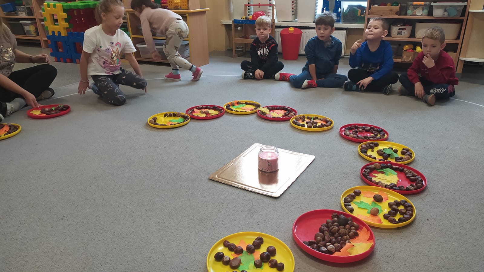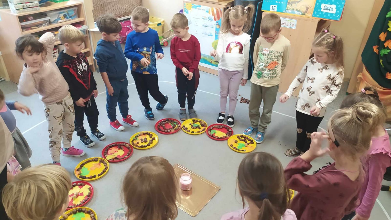 Kolorowa jesień inspiruje nas do działania.Bawiliśmy się na lekcji ciszy według Marii Montessori.