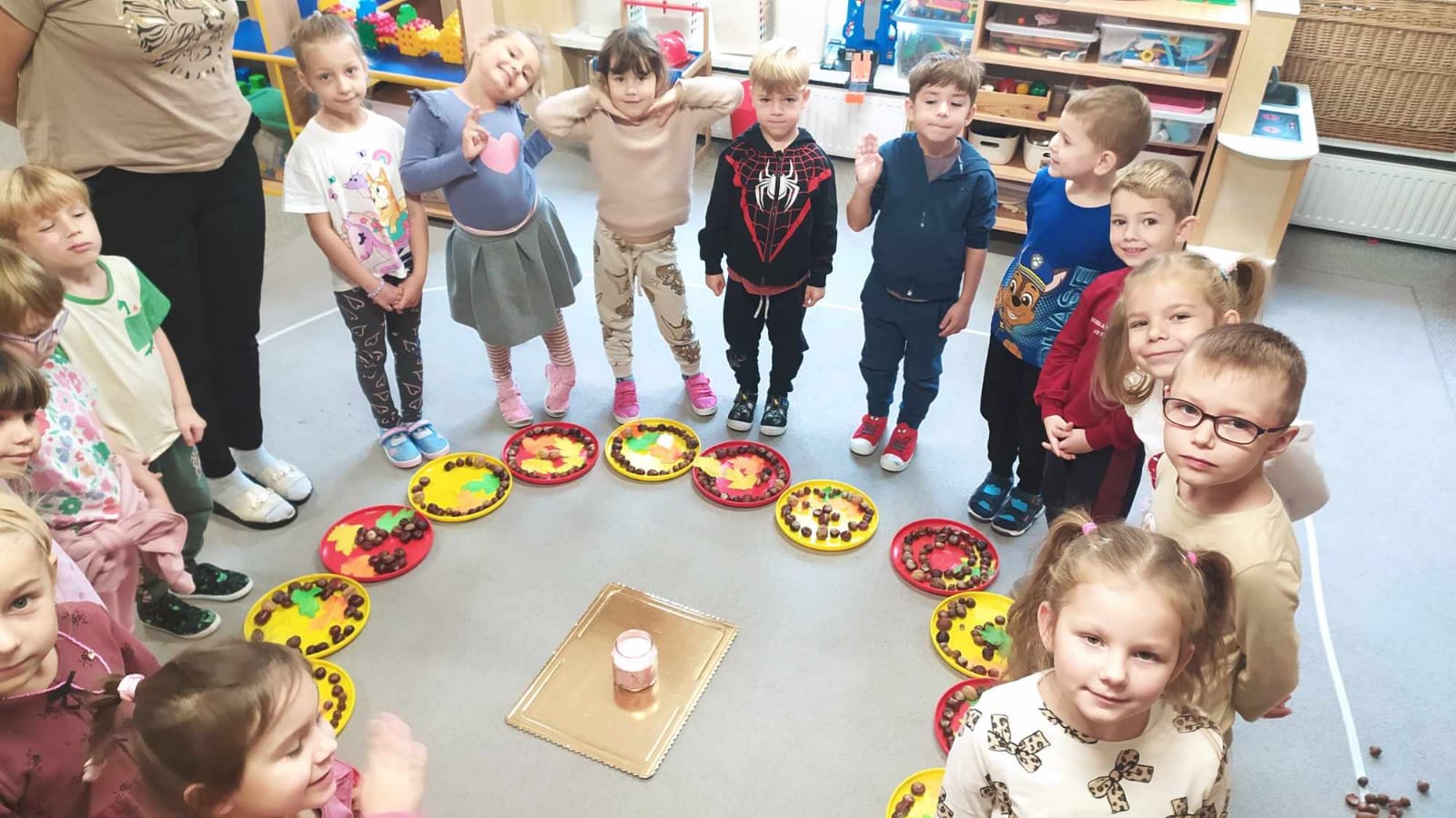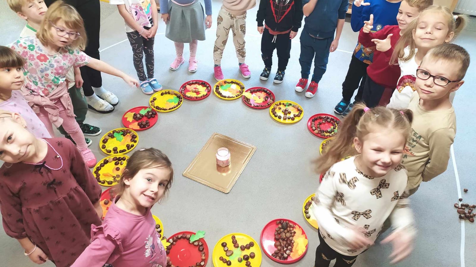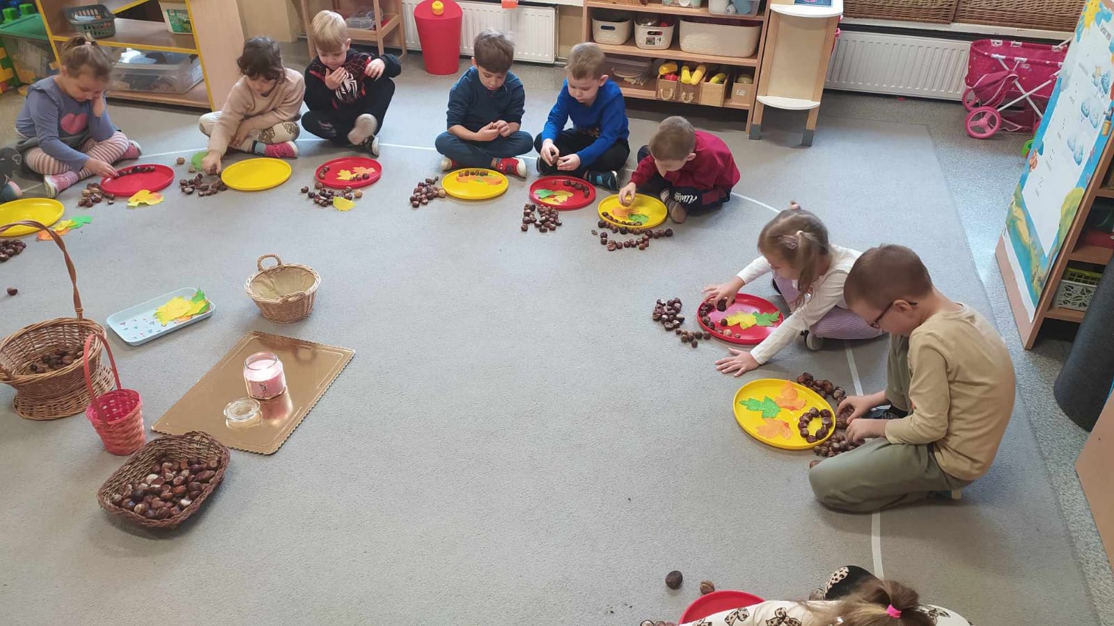 Kolorowa jesień inspiruje nas do działania.Bawiliśmy się na lekcji ciszy według Marii Montessori.