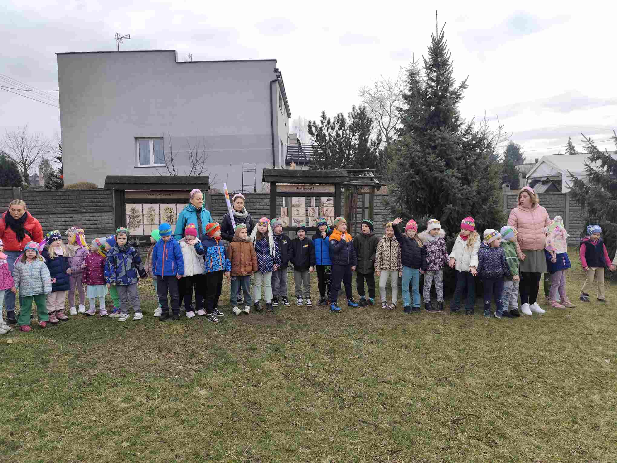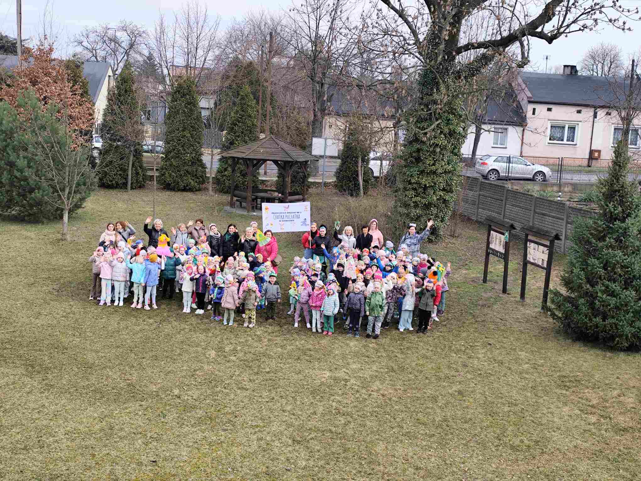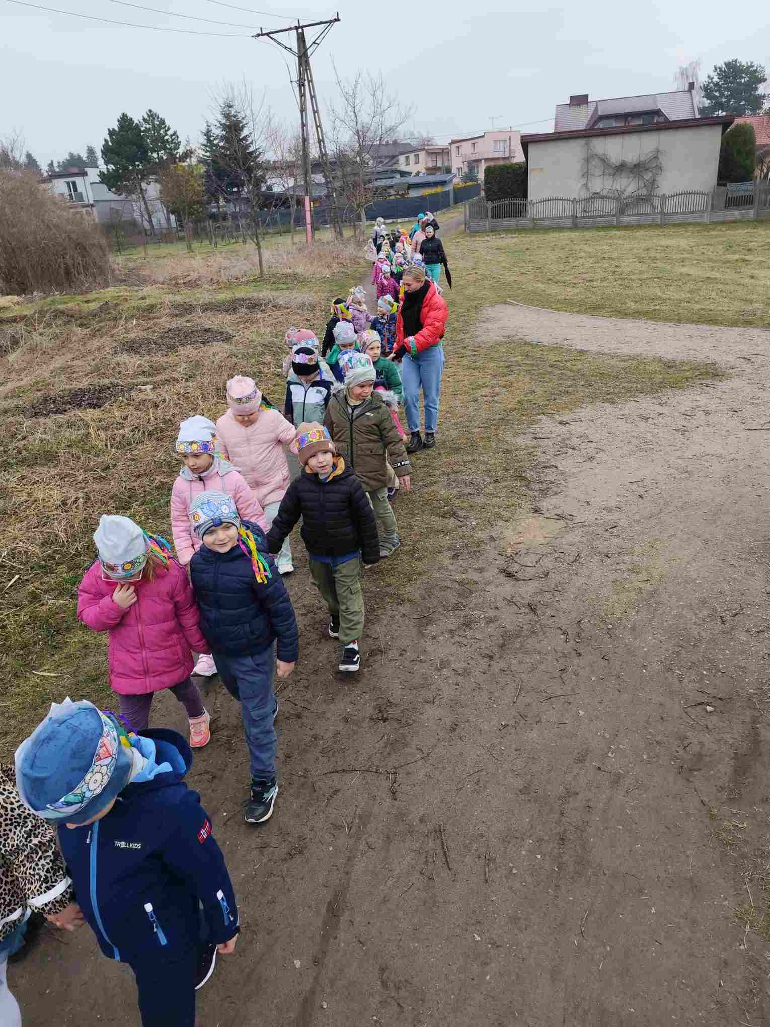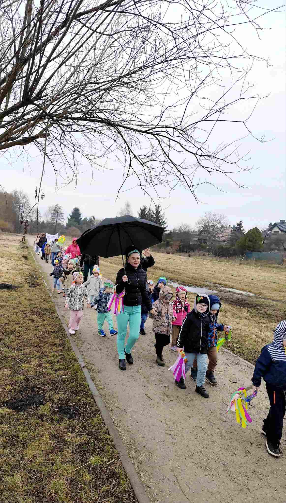 Powitanie wiosny to radosne święto obchodzone w Polsce zazwyczaj 21 marca, związane z nadejściem astronomicznej wiosny i dłuższymi dniami. Tradycyjne zwyczaje to topienie lub palenie słomianej kukły – Marzanny, symbolizującej zimę i śmierć, co ma przywołać ciepło i zieleń.Przedszkolaki z Chatki Puchatka postanowiły powitać nową porę roku spacerem ulicami wokół przedszkola.Każdy przedszkolak ubrany był w wiosennej kolorystyce.Uwieńczeniem stroju był wianek samodzielnie przez dzieci przygotowany kilka dni wcześniej.Wiosenny korowód ubarwiała muzyka i śpiew dzieci.A przy przedszkolu wszyscy ochoczo zaśpiewali dla wiosenki piosenkę " Maszeruje wiosna".Nową porę roku oficjalnie i z radością uważamy za rozpoczętą.