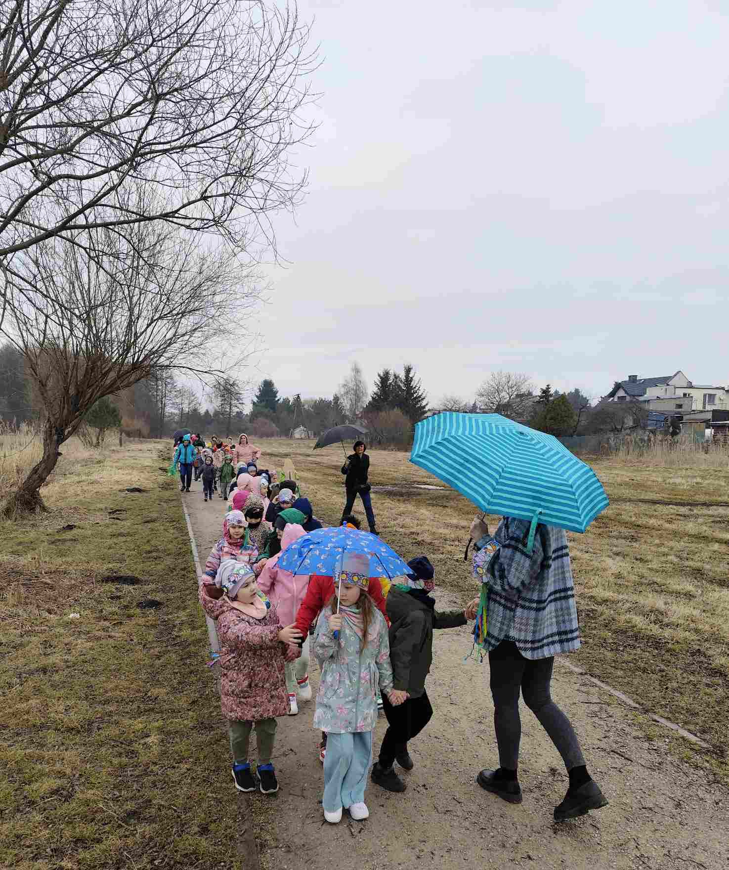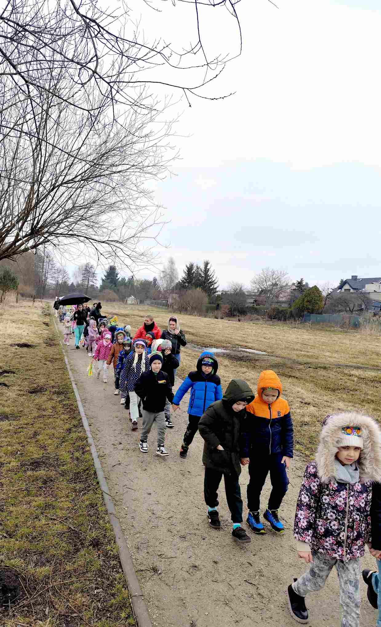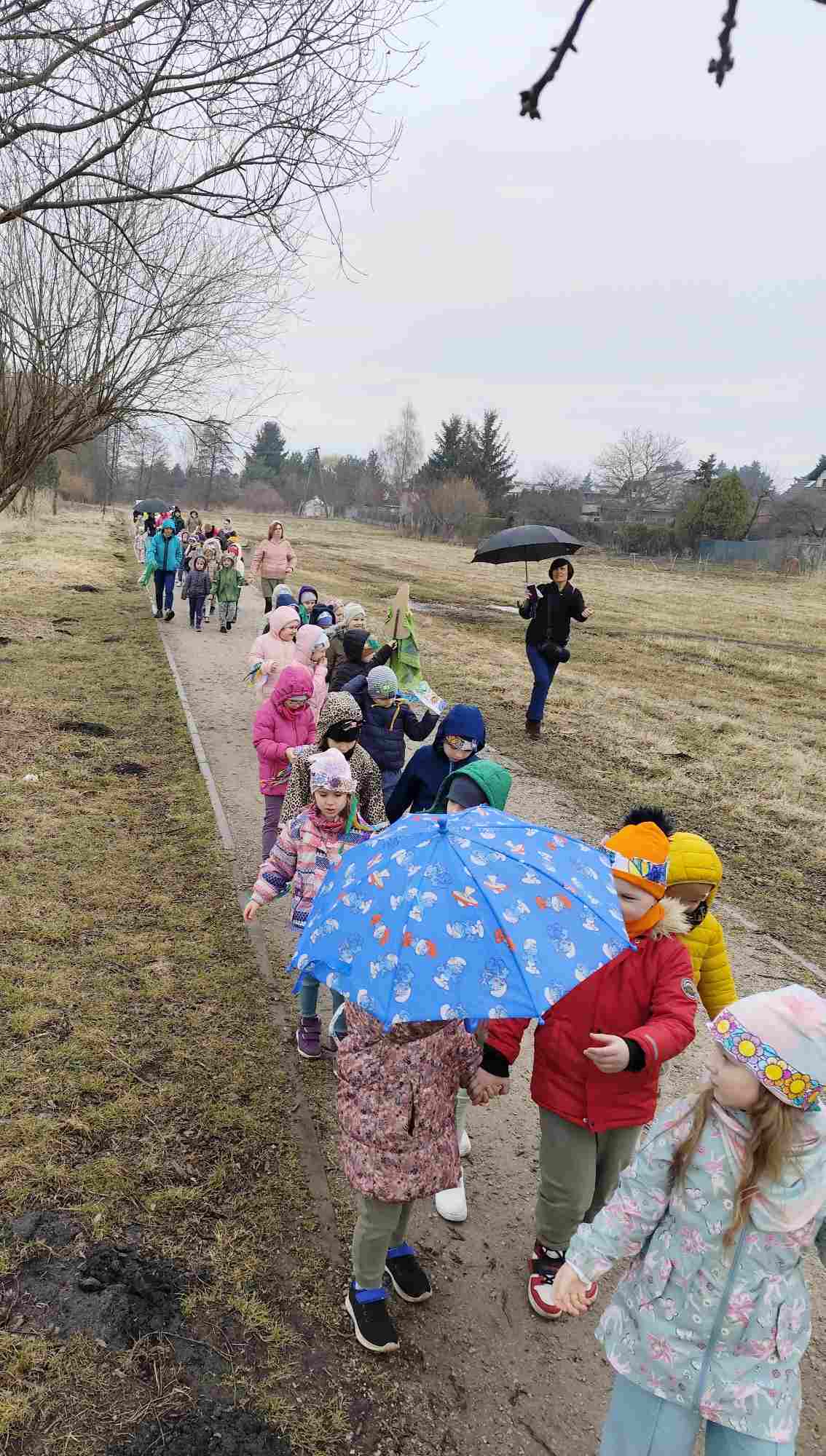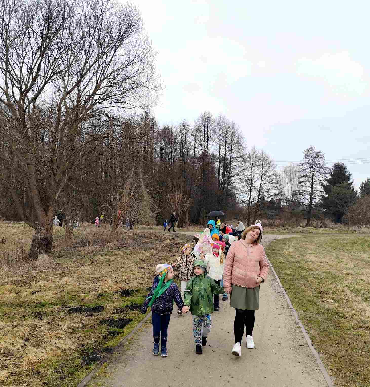 Powitanie wiosny to radosne święto obchodzone w Polsce zazwyczaj 21 marca, związane z nadejściem astronomicznej wiosny i dłuższymi dniami. Tradycyjne zwyczaje to topienie lub palenie słomianej kukły – Marzanny, symbolizującej zimę i śmierć, co ma przywołać ciepło i zieleń.Przedszkolaki z Chatki Puchatka postanowiły powitać nową porę roku spacerem ulicami wokół przedszkola.Każdy przedszkolak ubrany był w wiosennej kolorystyce.Uwieńczeniem stroju był wianek samodzielnie przez dzieci przygotowany kilka dni wcześniej.Wiosenny korowód ubarwiała muzyka i śpiew dzieci.A przy przedszkolu wszyscy ochoczo zaśpiewali dla wiosenki piosenkę " Maszeruje wiosna".Nową porę roku oficjalnie i z radością uważamy za rozpoczętą.