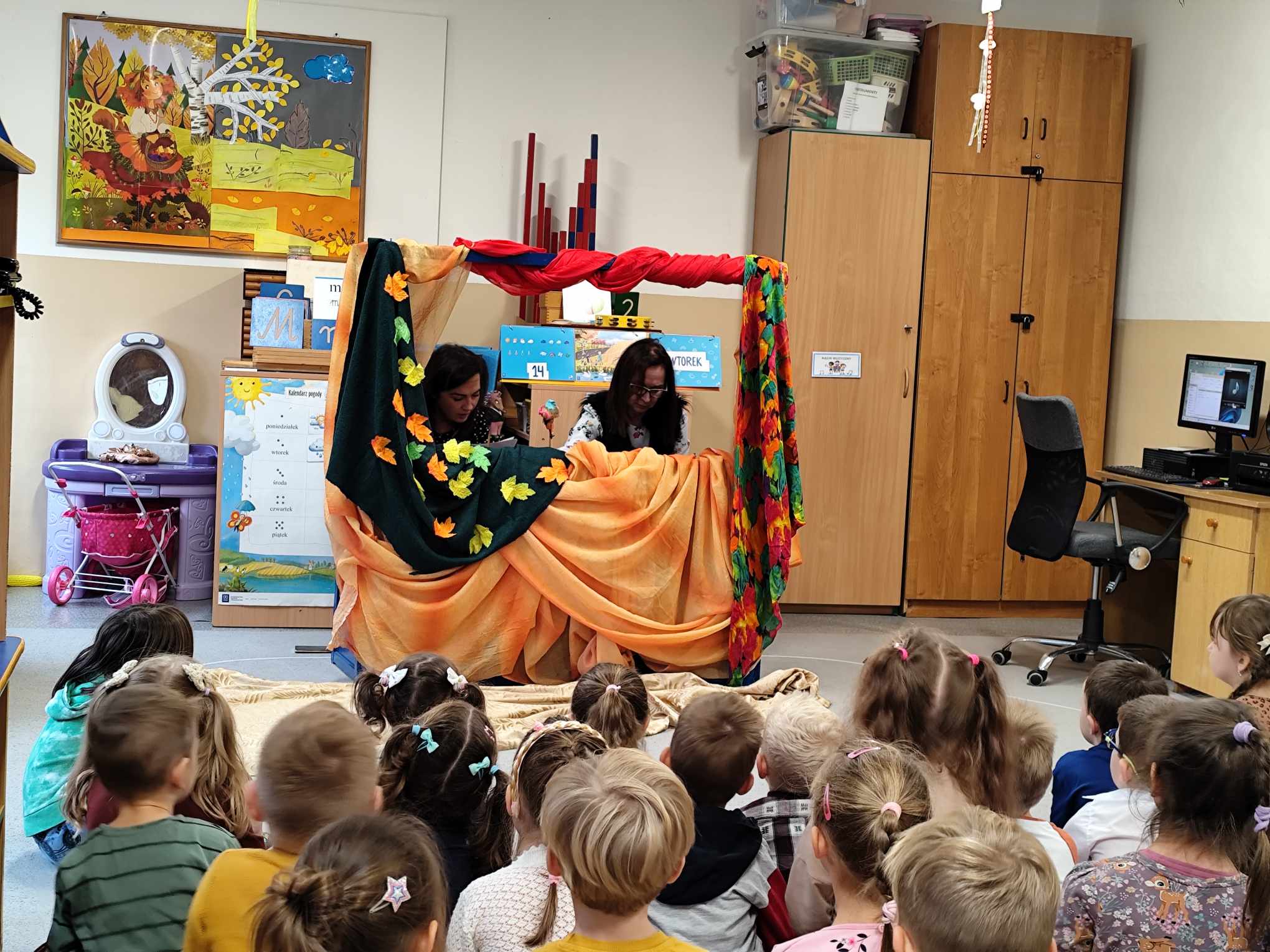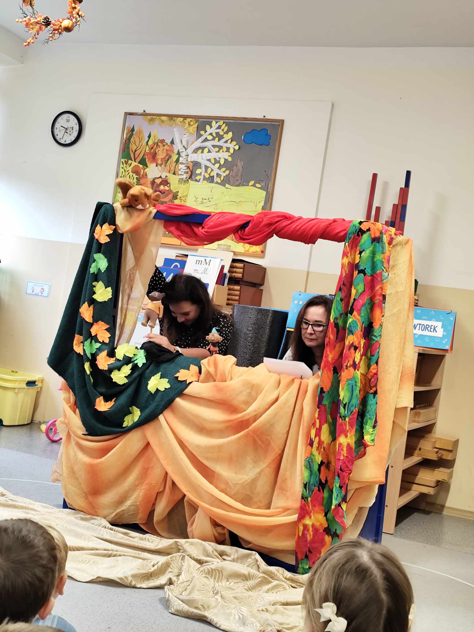 Przedszkolny teatr Puchatkowo zaprezentował dzieciom bajkę pt "Kosmatek szuka mieszkania na zimę".