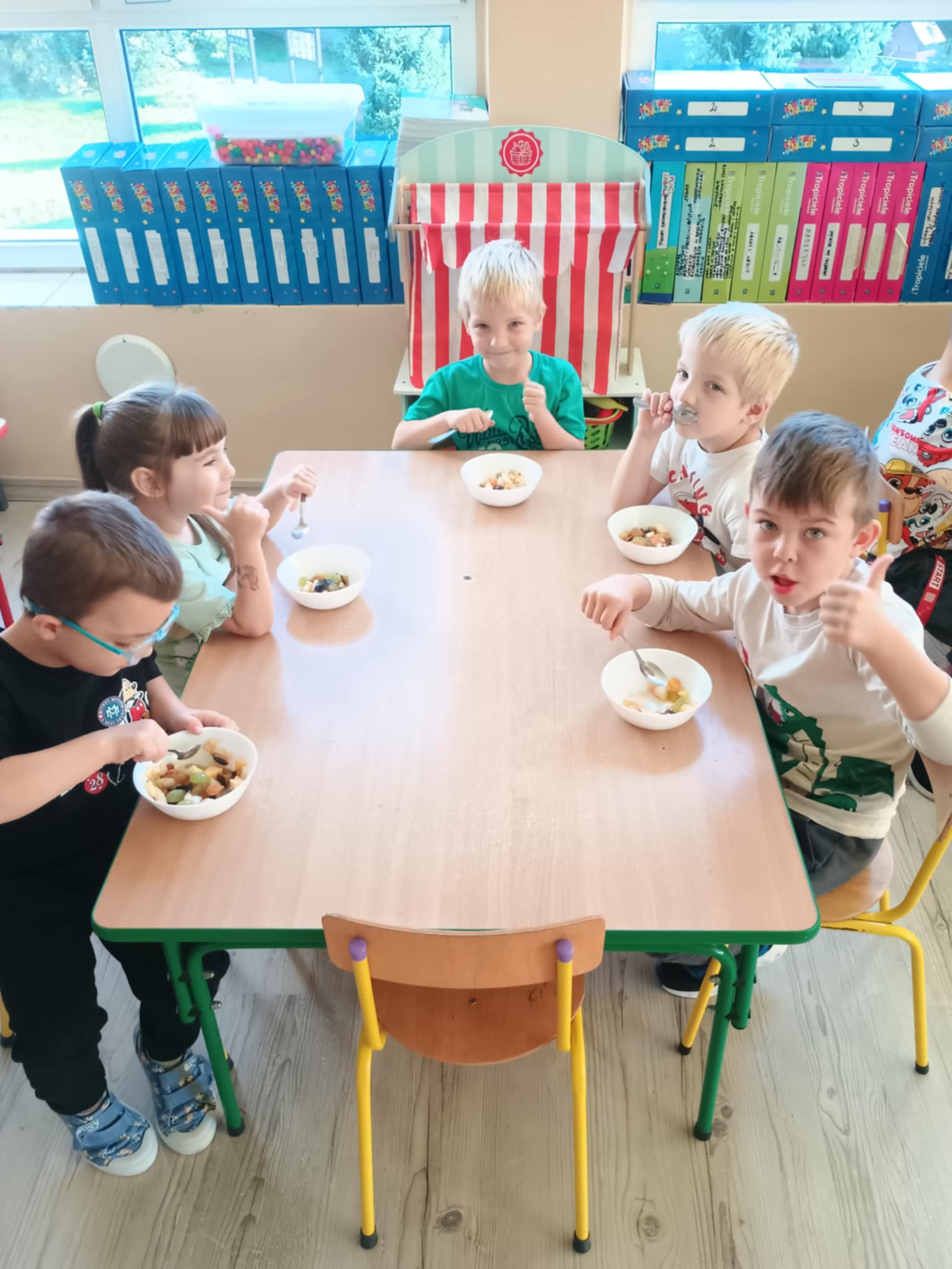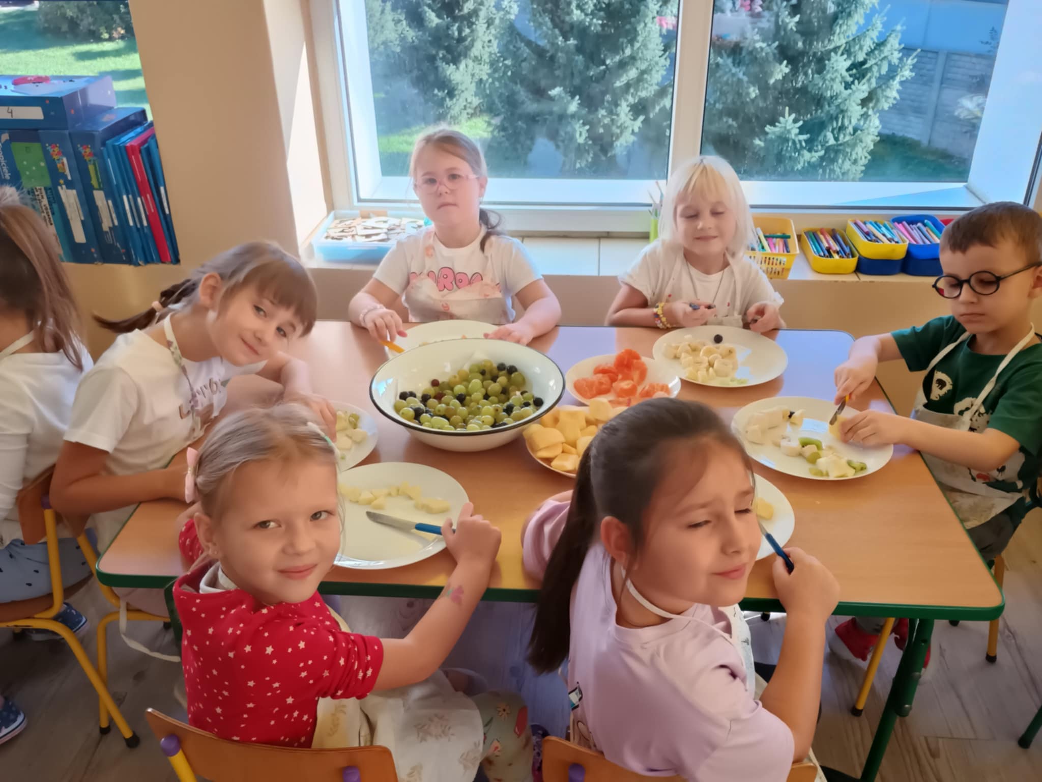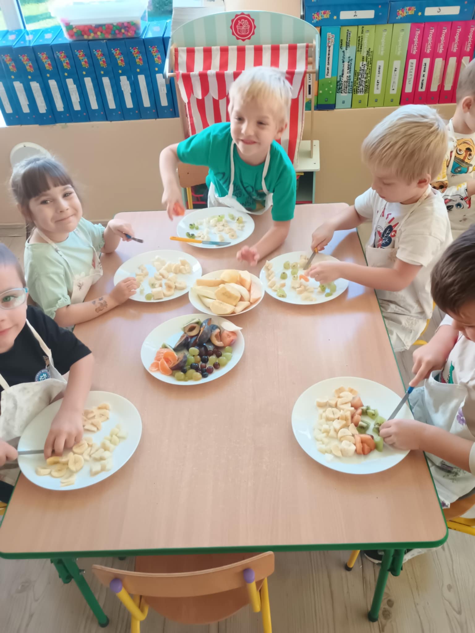 Sowy robią sałatkę owocową - zajęcia kulinarne.