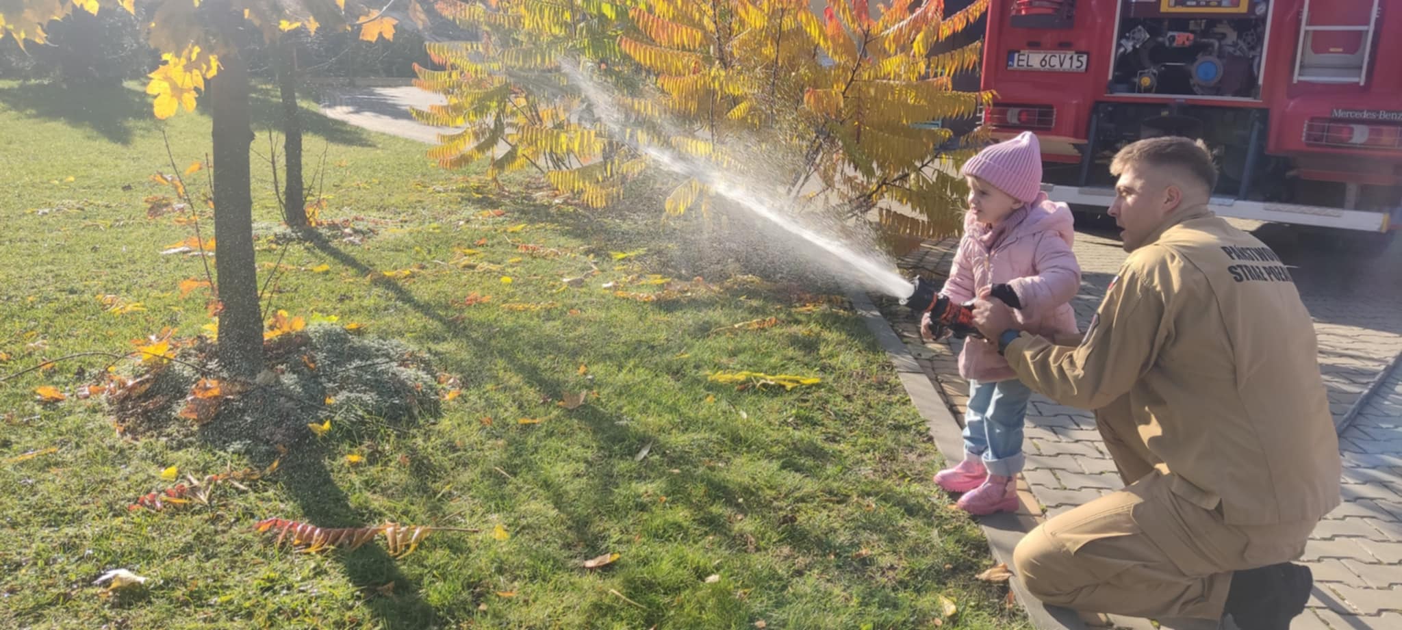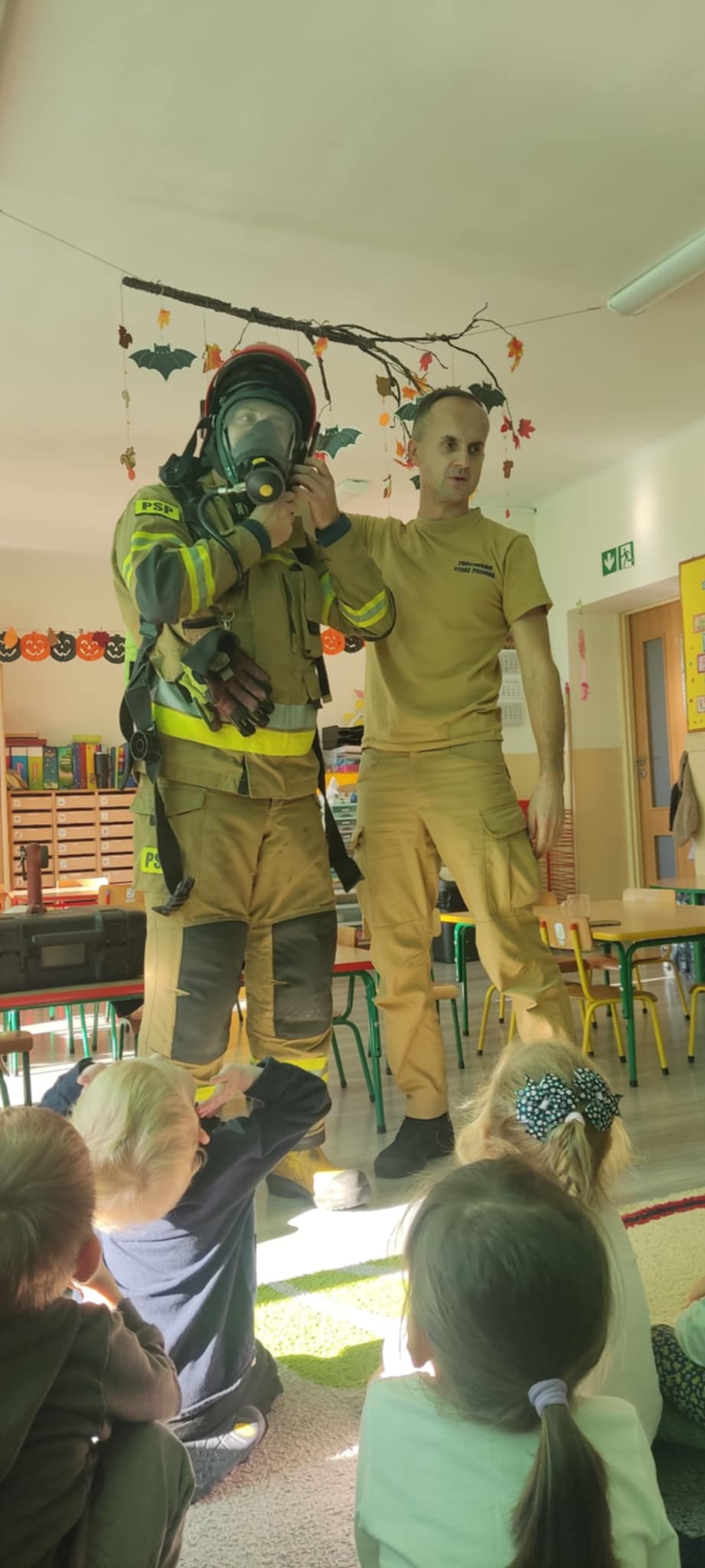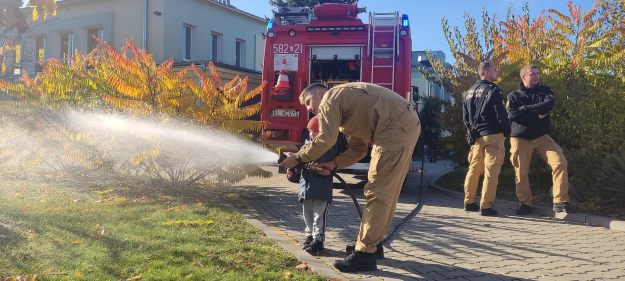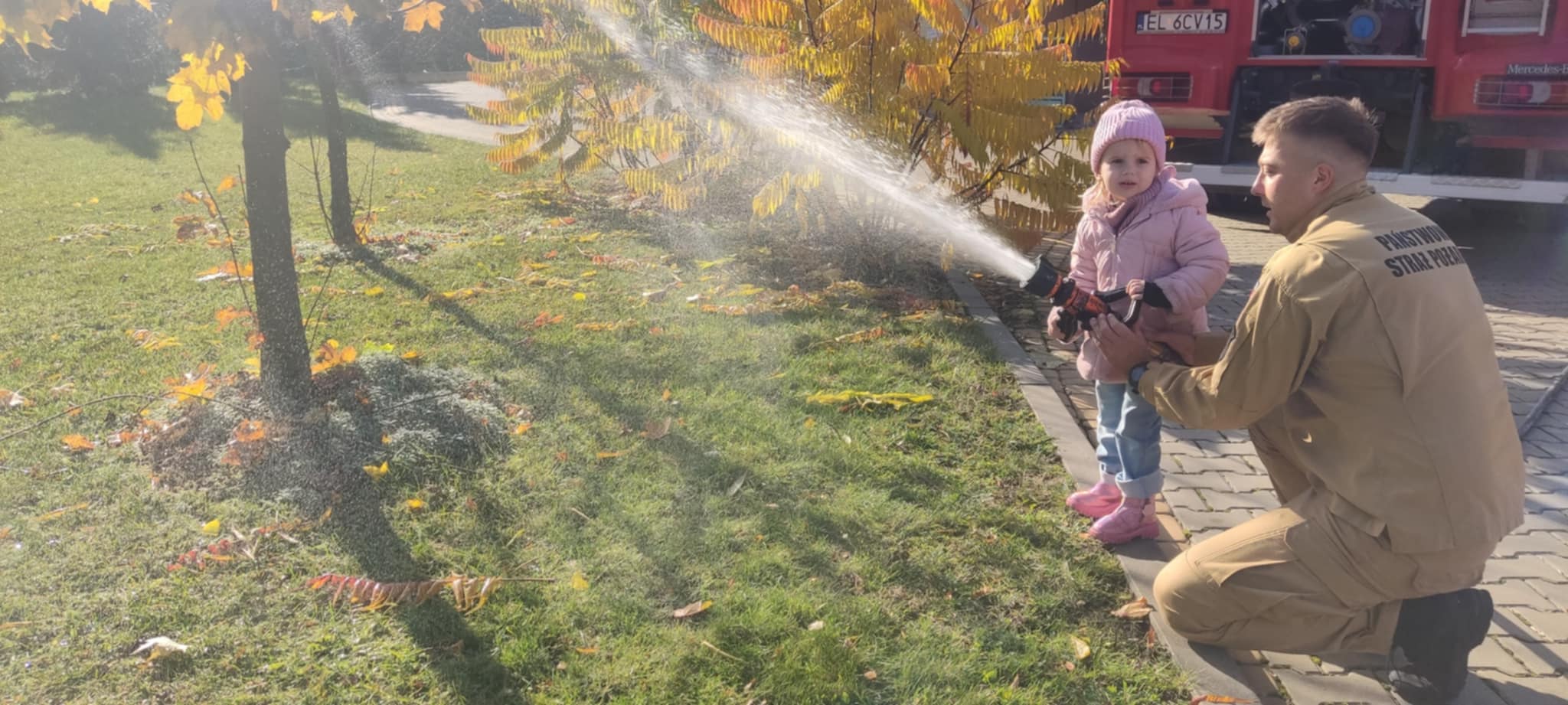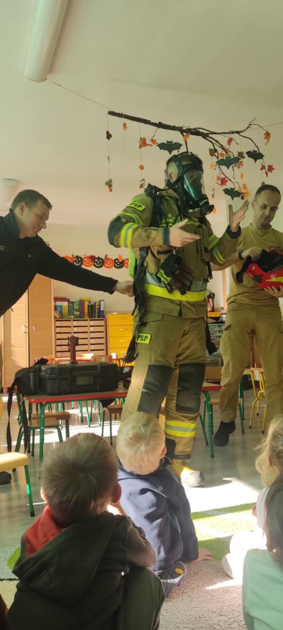 Strażacy zaprezentowali swój sprzęt ratowniczy — hełmy, węże, maski i ubrania ochronne. Największe wrażenie zrobił wóz strażacki, który dzieci mogły dokładnie obejrzeć z bliska. Niektórzy odważni przedszkolacy mieli okazję usiąść w kabinie kierowcy i posłuchać dźwięku syreny! Niemniejsze wrażenie na dzieciach zrobiła możliwość lania wody z węża strażackiego.