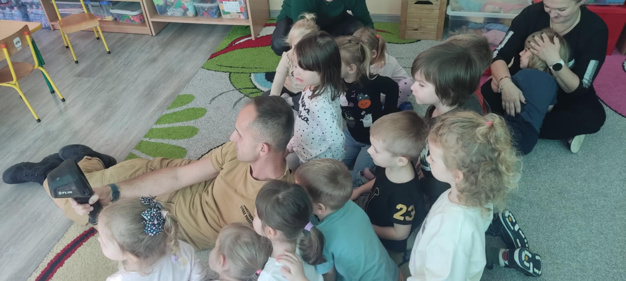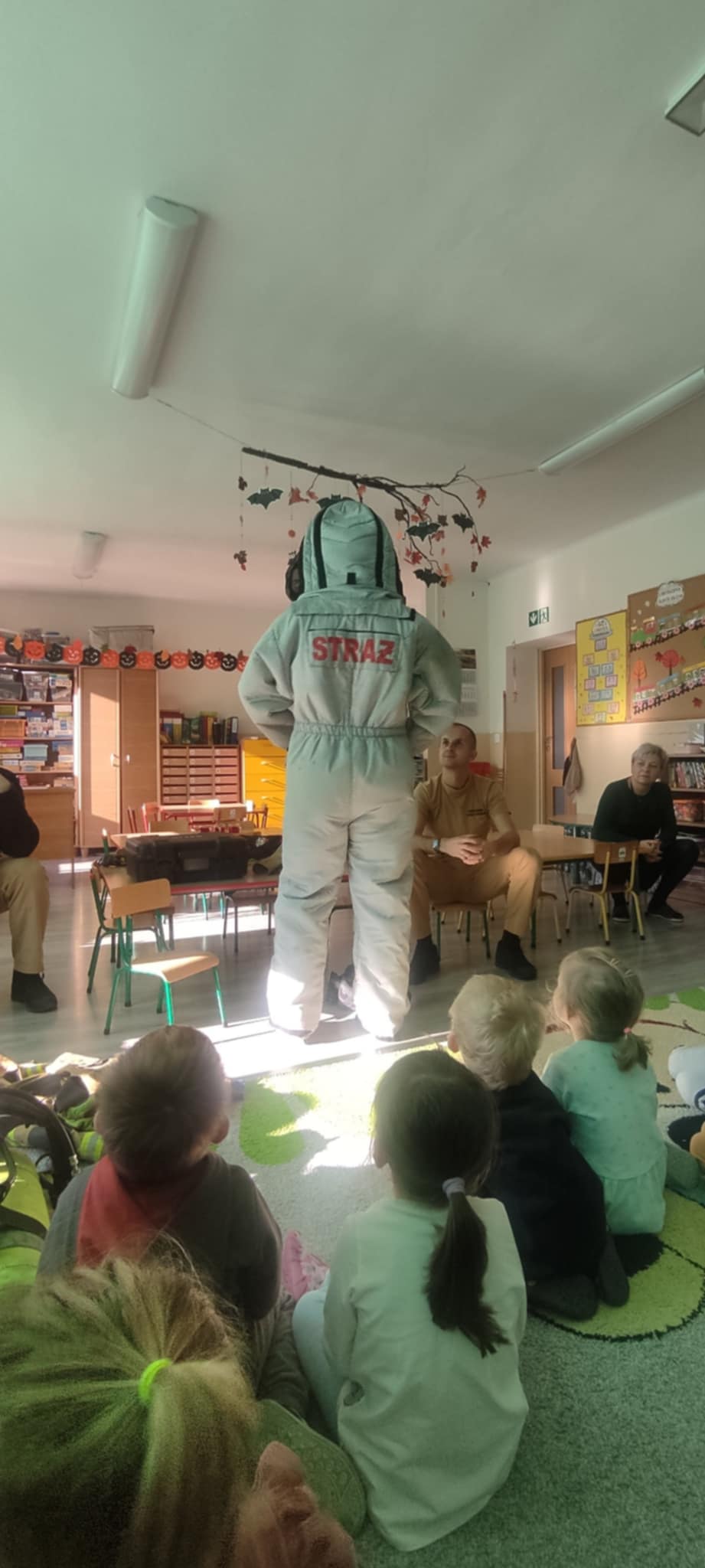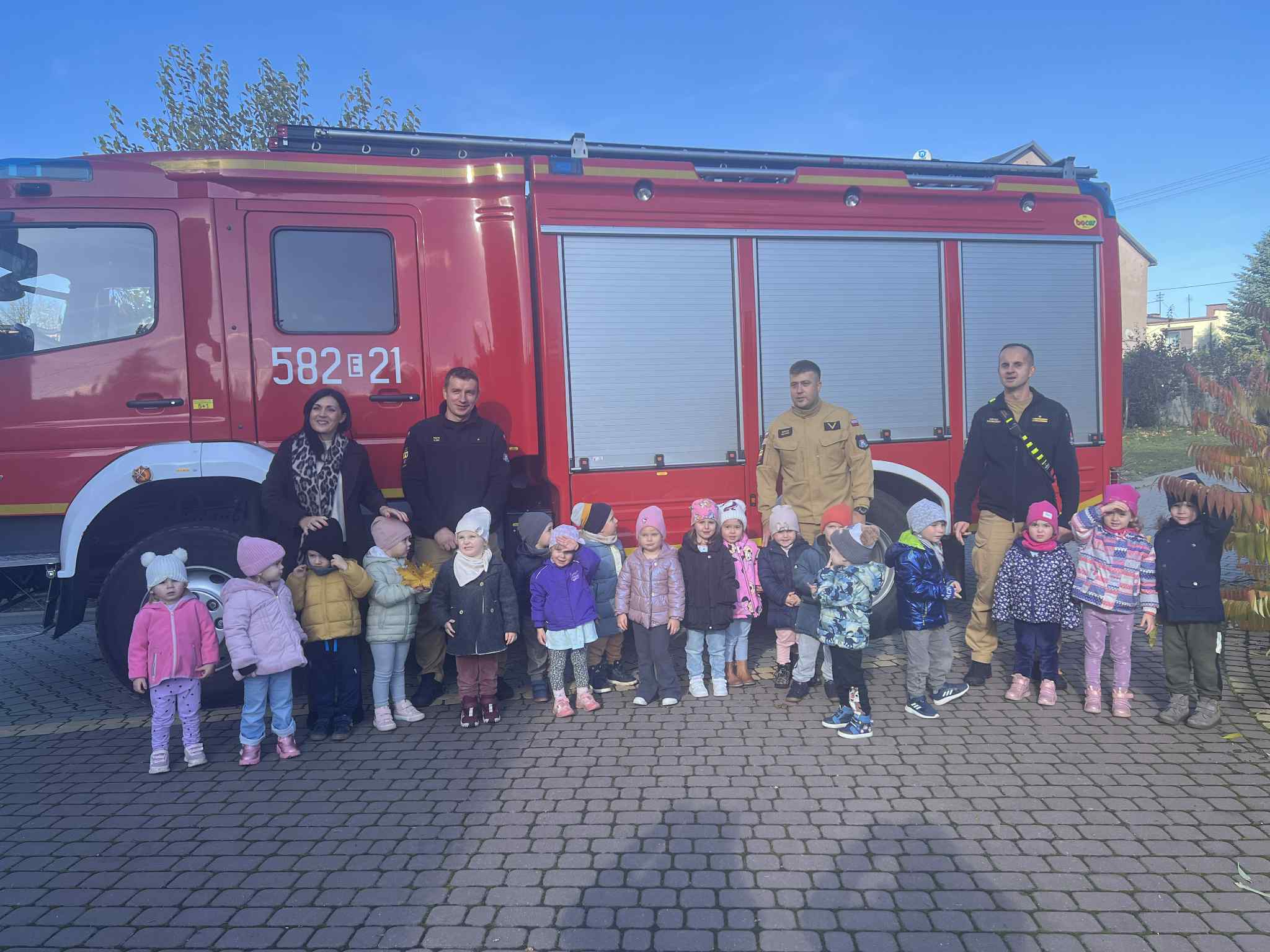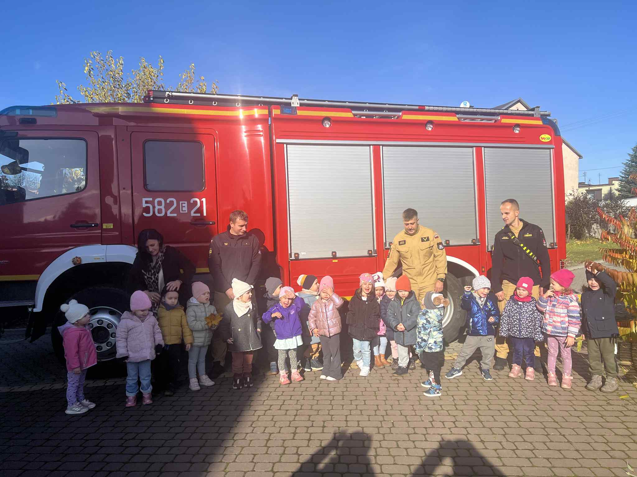 Dziś dzieci z grupy „Króliczki” uczestniczyły w wyjątkowym spotkaniu ze strażakami. Goście opowiedzieli przedszkolakom o swojej odpowiedzialnej pracy i o tym, jak ważne jest pomaganie innym. Dzieci dowiedziały się, w jakich sytuacjach należy wzywać straż pożarną oraz jak zachować się w razie pożaru.