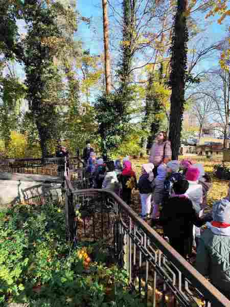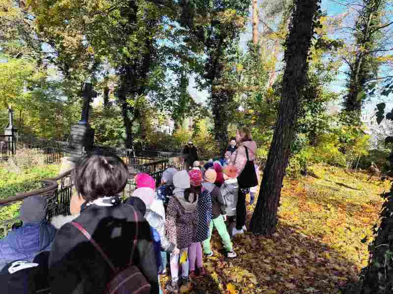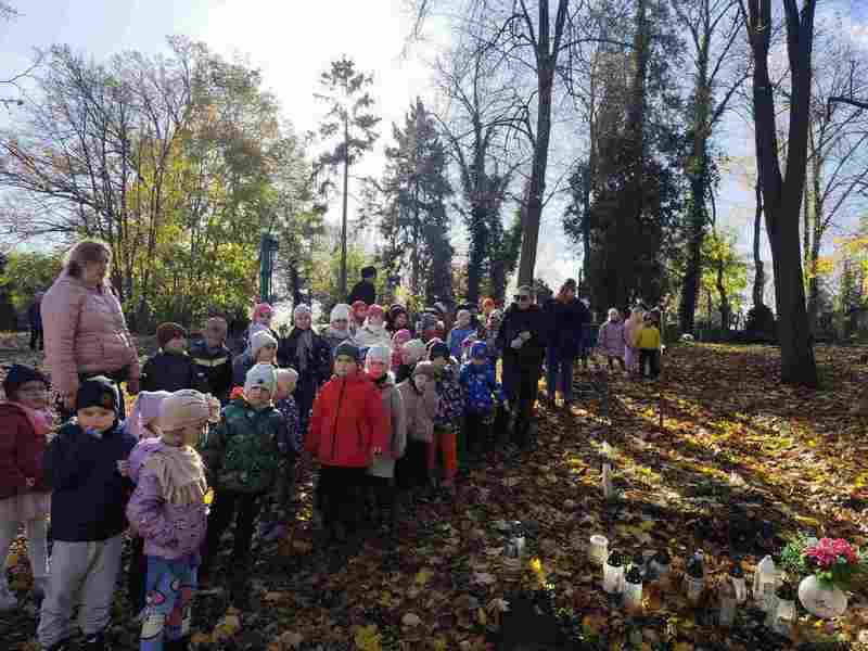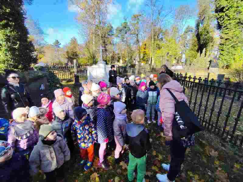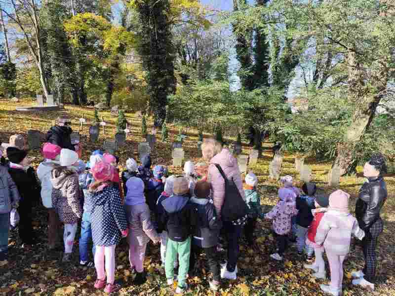 Z okazji Dnia Wszystkich Świętych 31 października dzieci z grup: „Kubusie”, „Tygryski” i „Kangurki” wybrali się na Cmentarz Niemiecki, aby uczcić pamięć zmarłych i poznać historię tego miejsca. Podczas spaceru szlakiem historii i pamięci dzieci zapaliły znicze oraz wysłuchały krótkiej opowieści o losach spoczywających tam osób. Wyjście było okazją do refleksji, kształtowania postaw szacunku wobec przeszłości i pielęgnowania pamięci o tych, którzy odeszli.