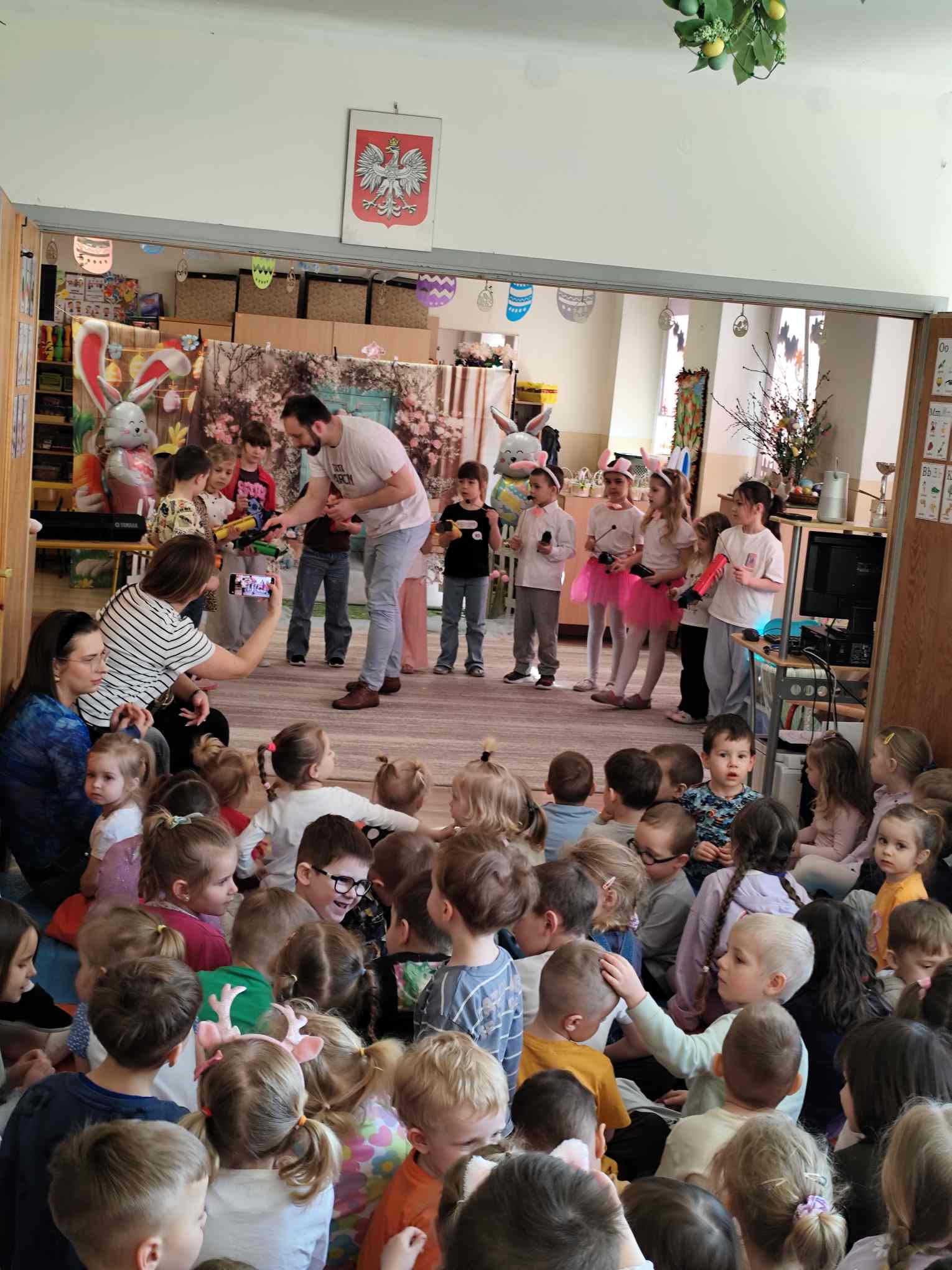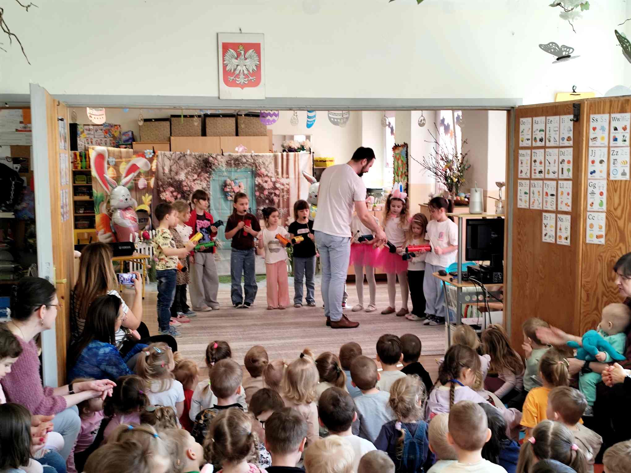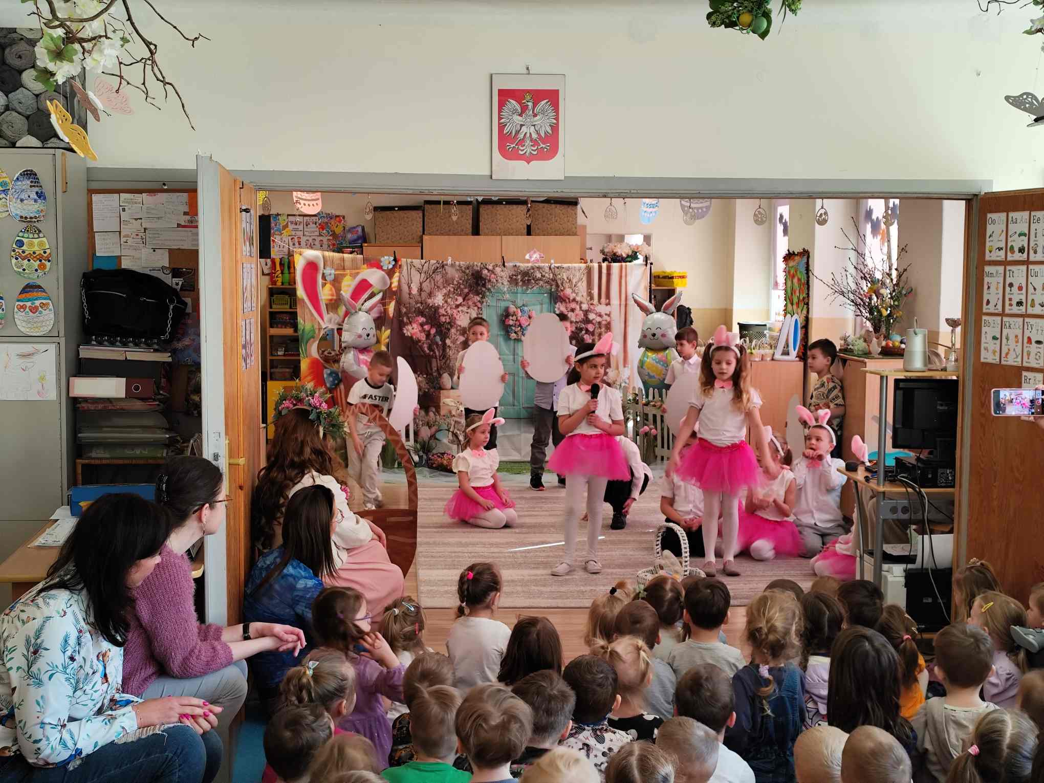 radosne wydarzenie, które łączy edukację o tradycjach z integracją dzieci,personelu.Podczas spotkania  dzieci zaprezentowały piosenki, tańce i wierszyki o tematyce wiosenno-świątecznej. oraz inscenizację przybliżającą ludowe obrzędy, Przedszkolaki zasiadły do wspólnego posiłku przy odświętnie udekorowanych stołach. Ważnym elementem było symboliczne dzielenie się jajkiem i składanie życzeń.