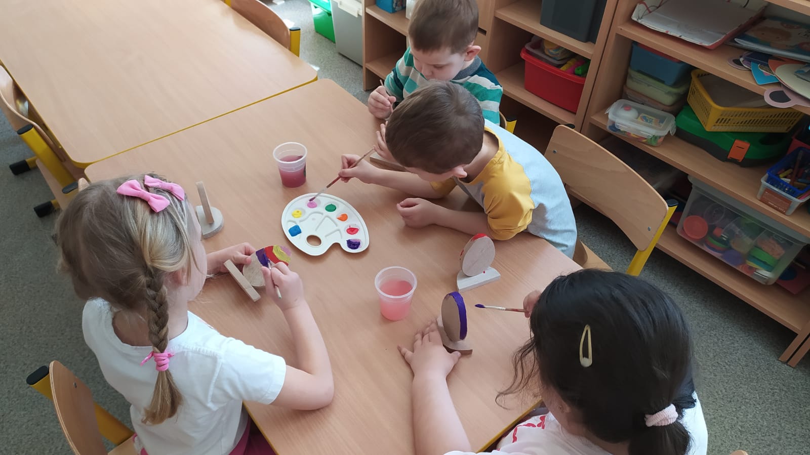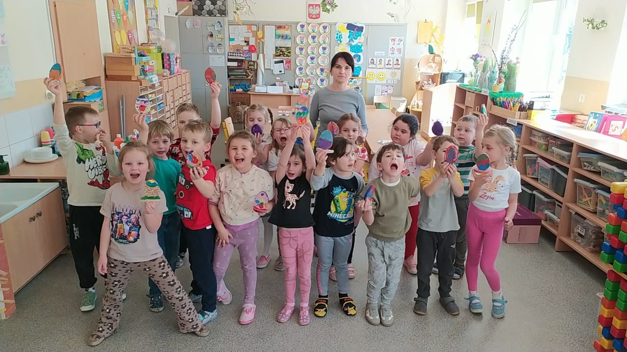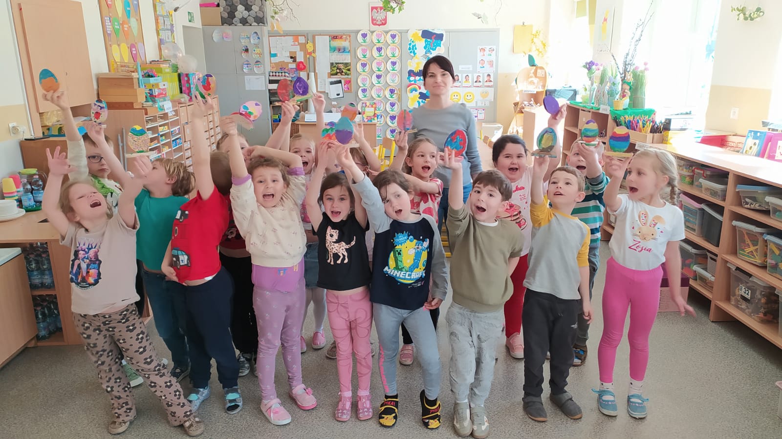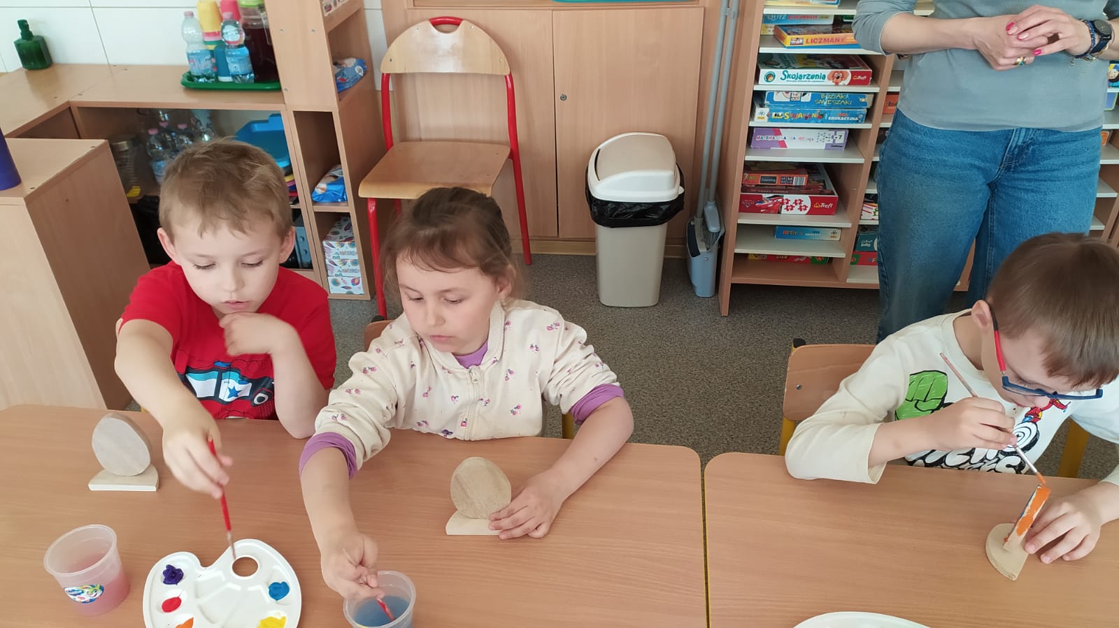 Przed Wielkanocą pani Gawęda, mama naszej koleżanki Mai, zorganizowała dla dzieci bardzo ciekawe zajęcie plastyczne. Zadaniem dzieci było ozdobienie drewnianego jajka przy pomocy farb. Powstałe pisanki dopełniły stroiki wielkanocne i powędrowały do dziecięcych domów. Dziękujemy pani Gawędzie!
