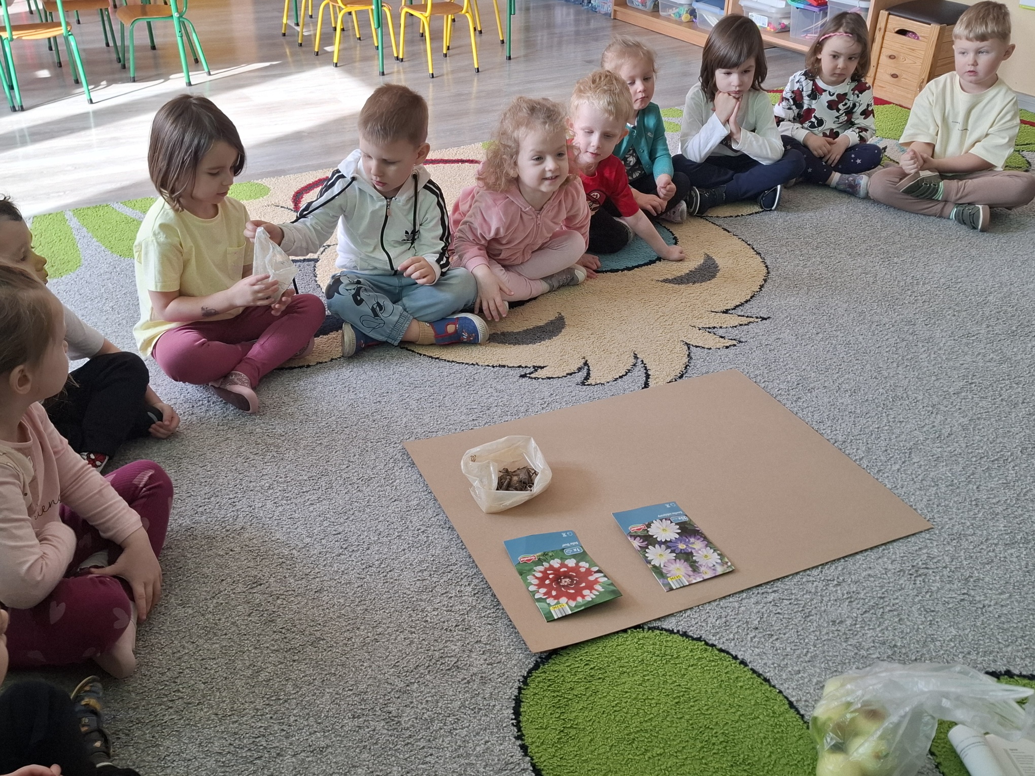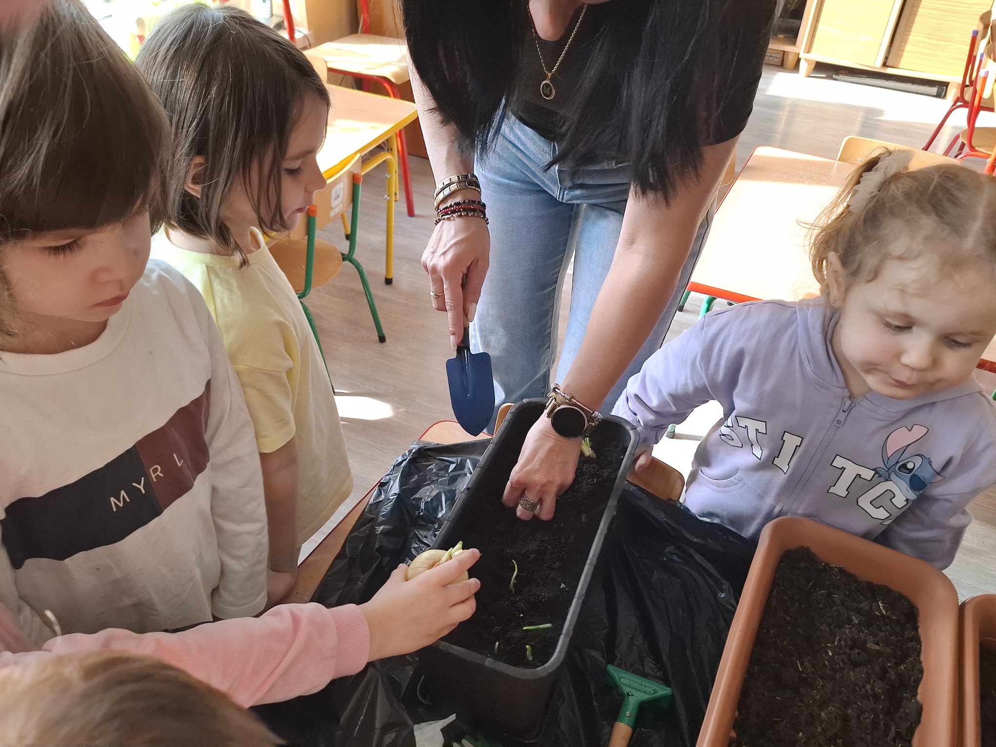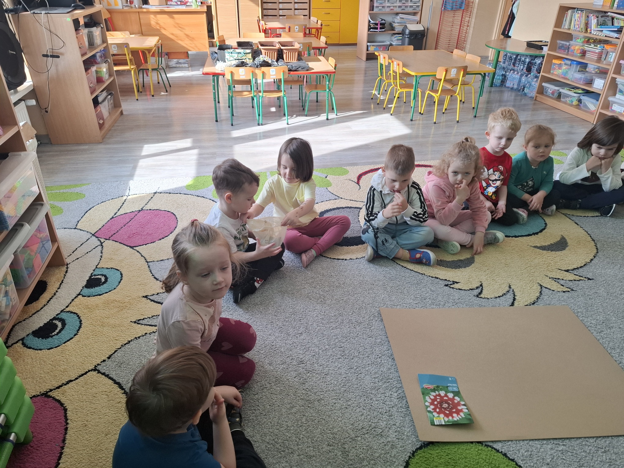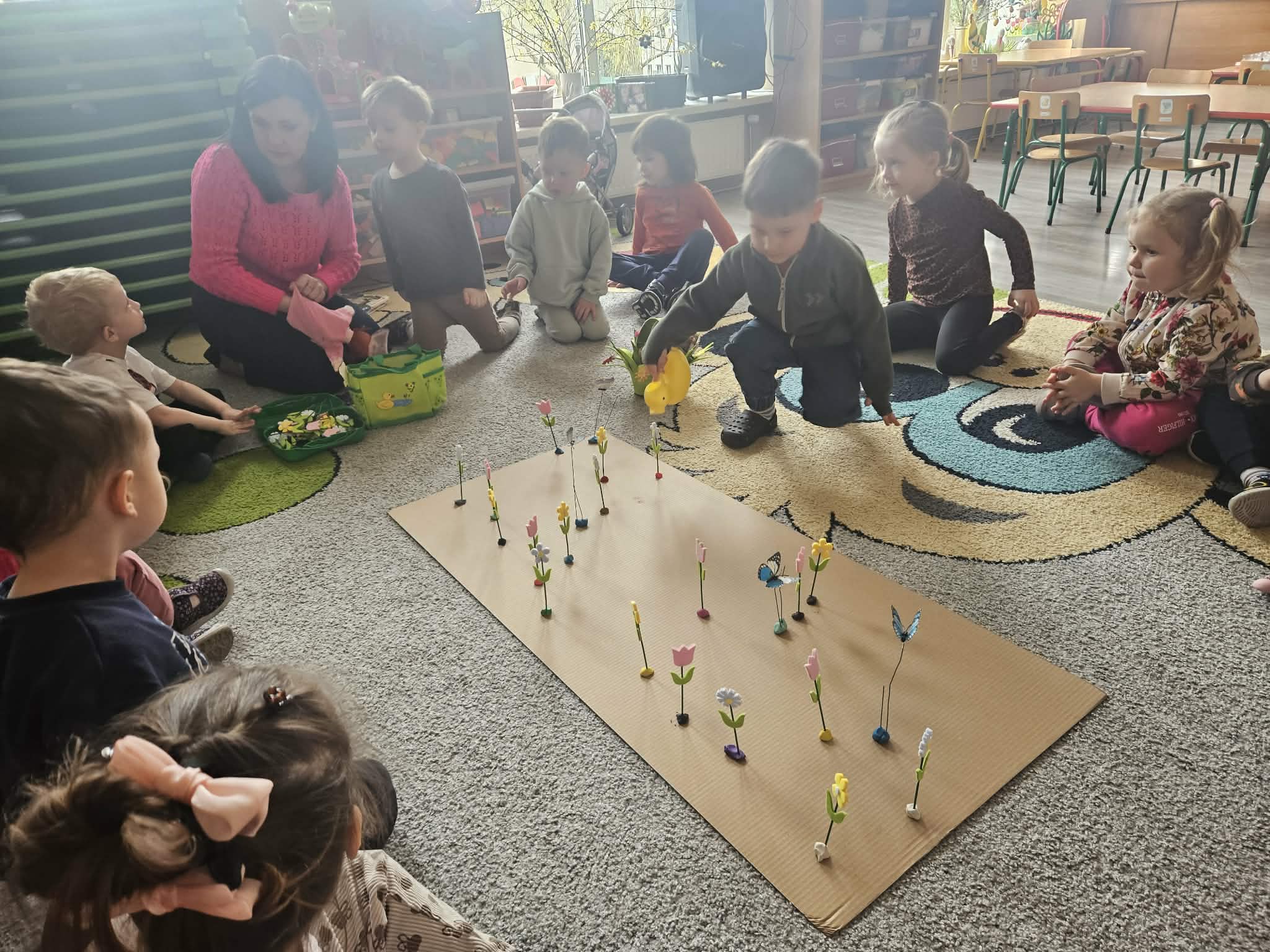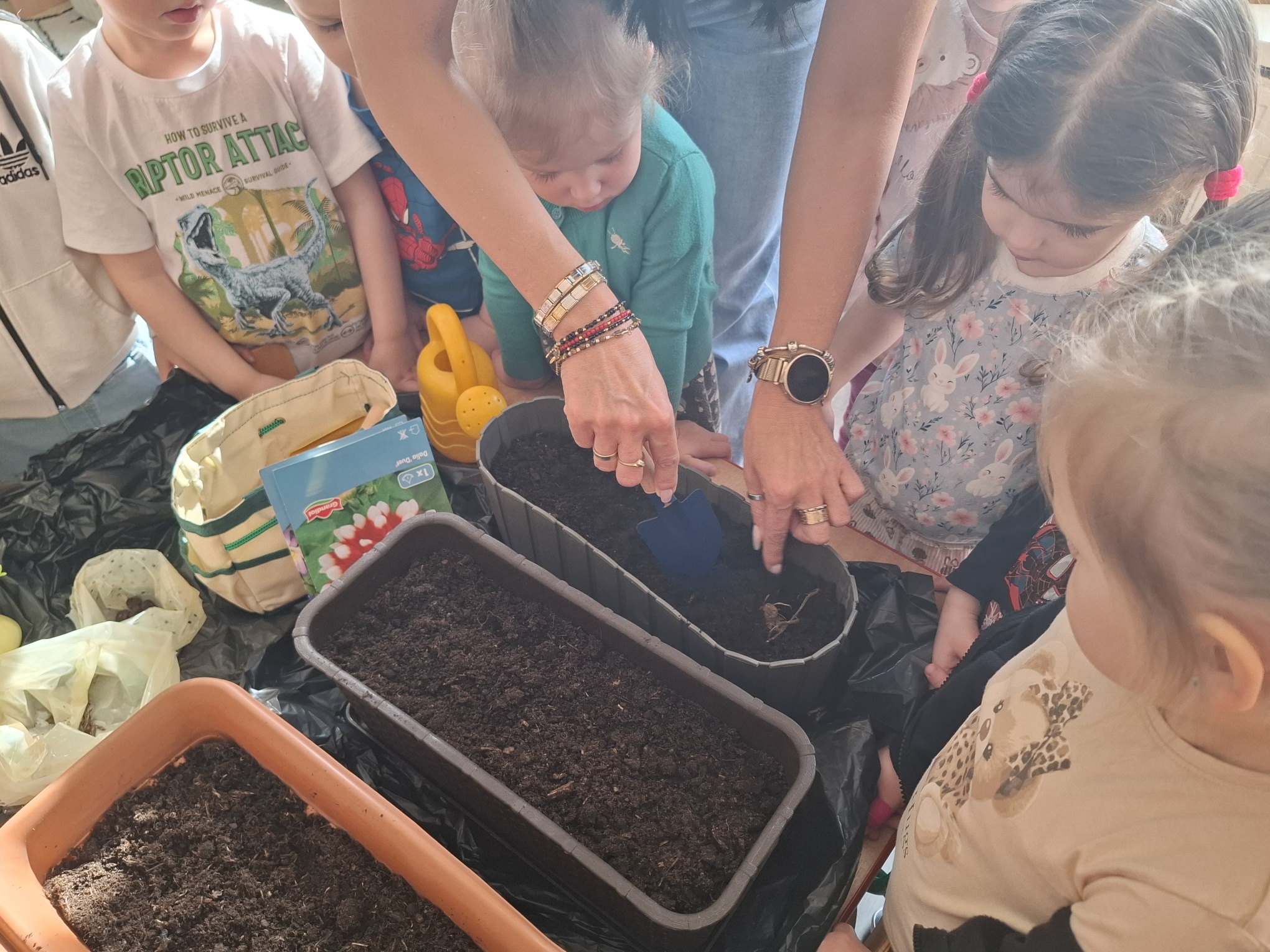 Podczas zajęć nie zabrakło aktywności praktycznych – dzieci siały nasionka, sadziły cebule, obserwowały rośliny oraz uczyły się, jak należy o nie dbać. Wykonywaliśmy także prace plastyczne związane z tematyką ogrodu, rozwijając wyobraźnię i zdolności manualne.