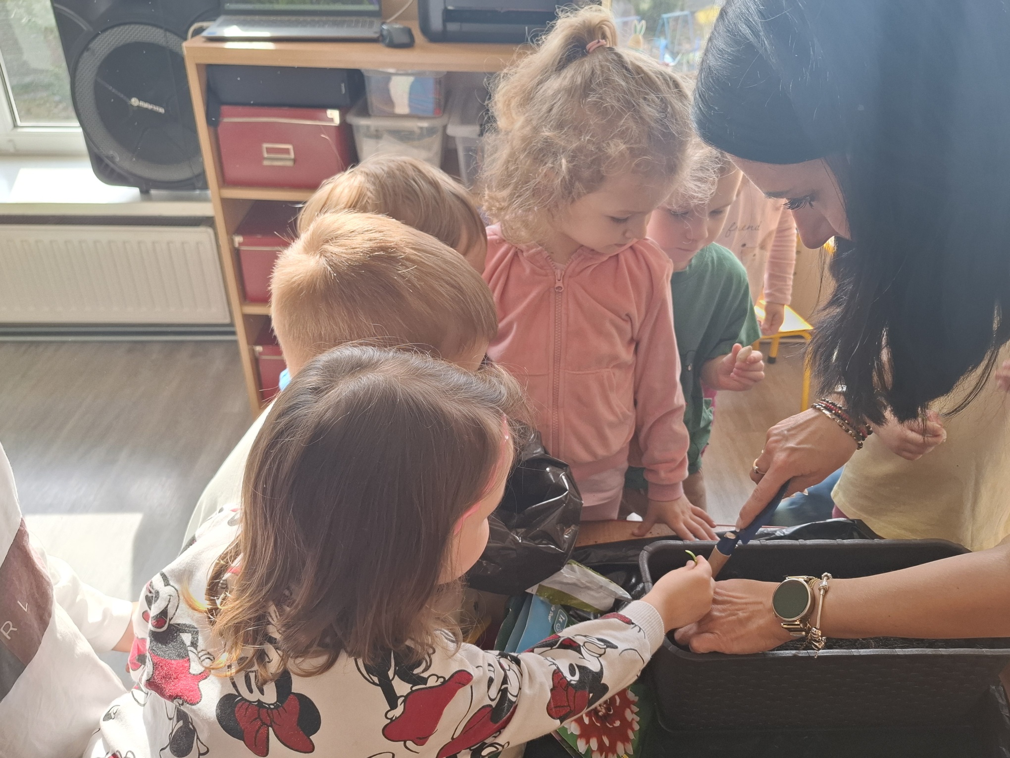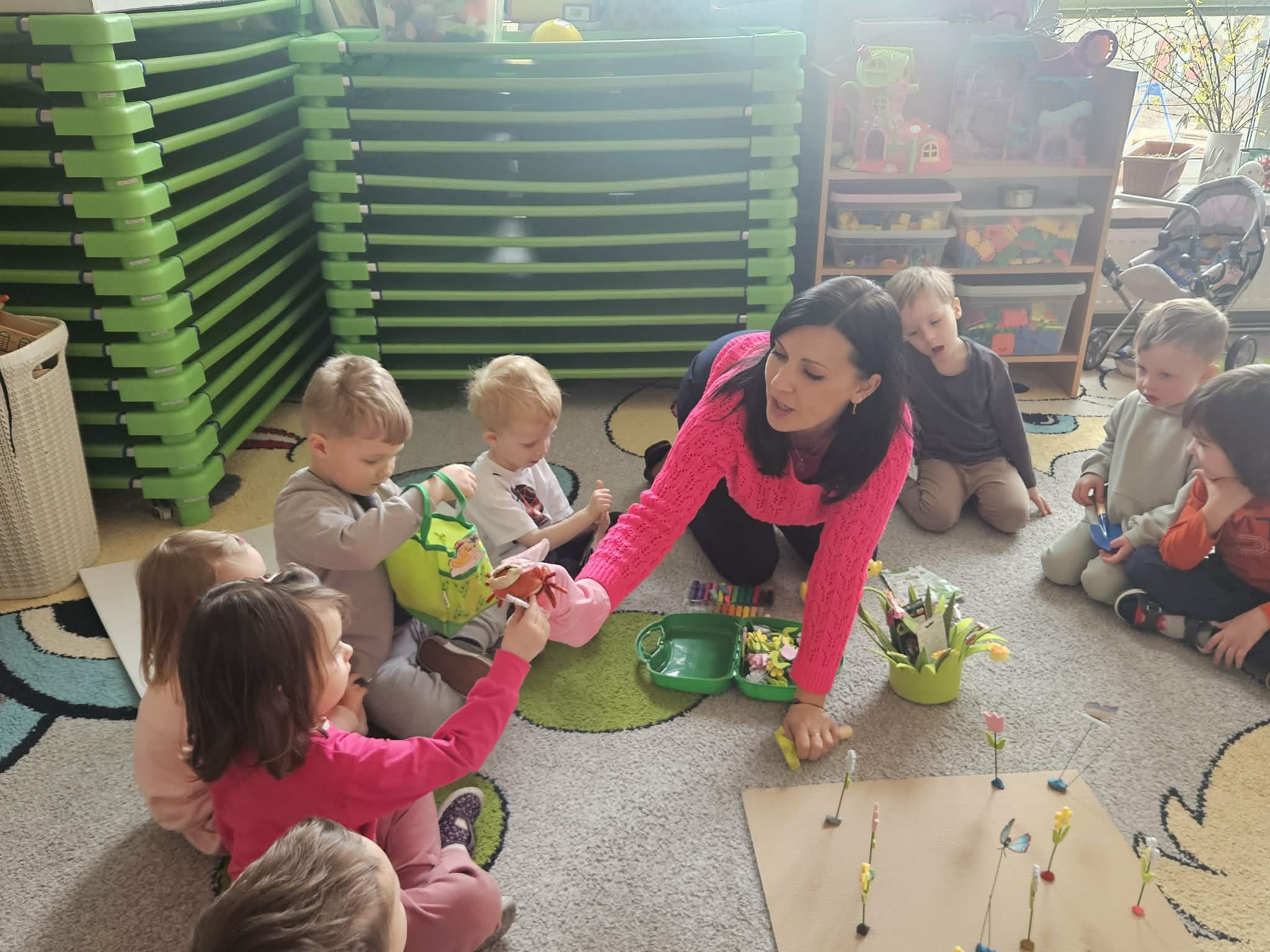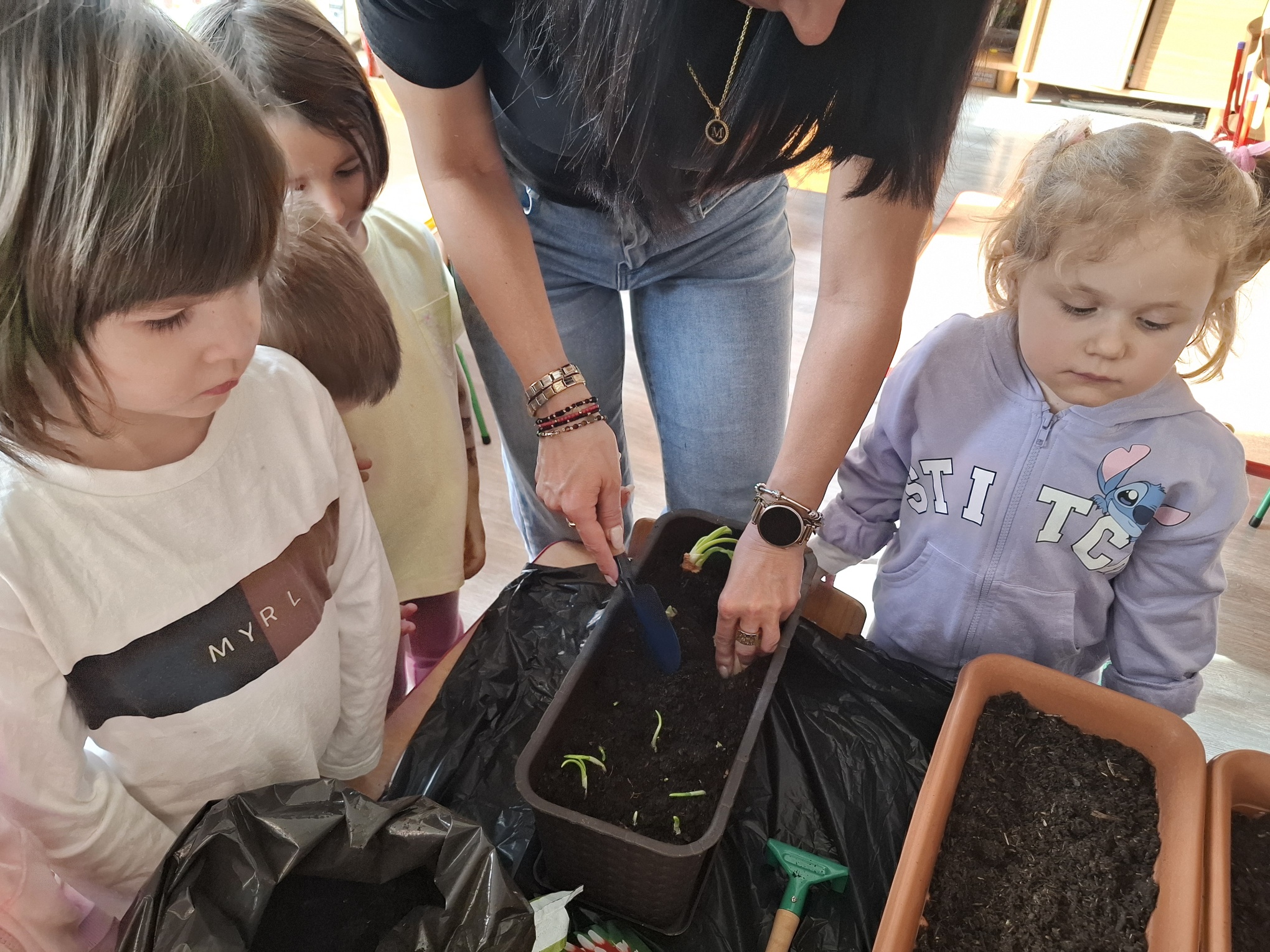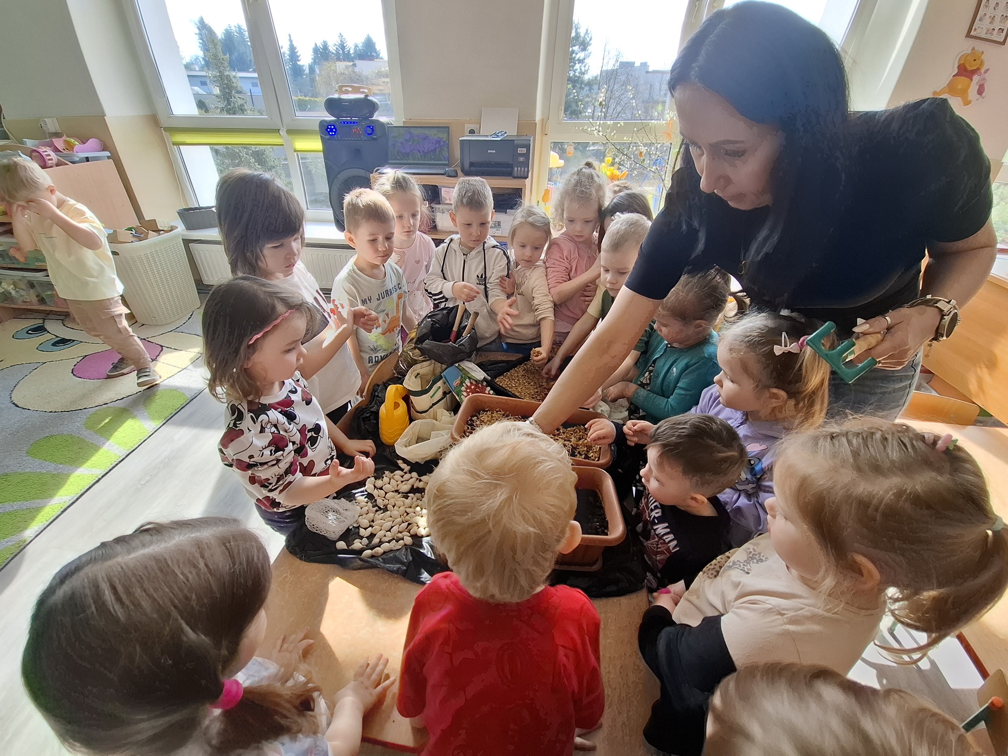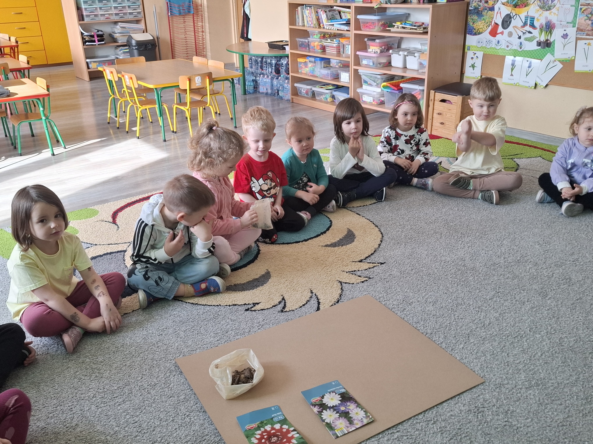 Podczas zajęć nie zabrakło aktywności praktycznych – dzieci siały nasionka, sadziły cebule, obserwowały rośliny oraz uczyły się, jak należy o nie dbać. Wykonywaliśmy także prace plastyczne związane z tematyką ogrodu, rozwijając wyobraźnię i zdolności manualne.