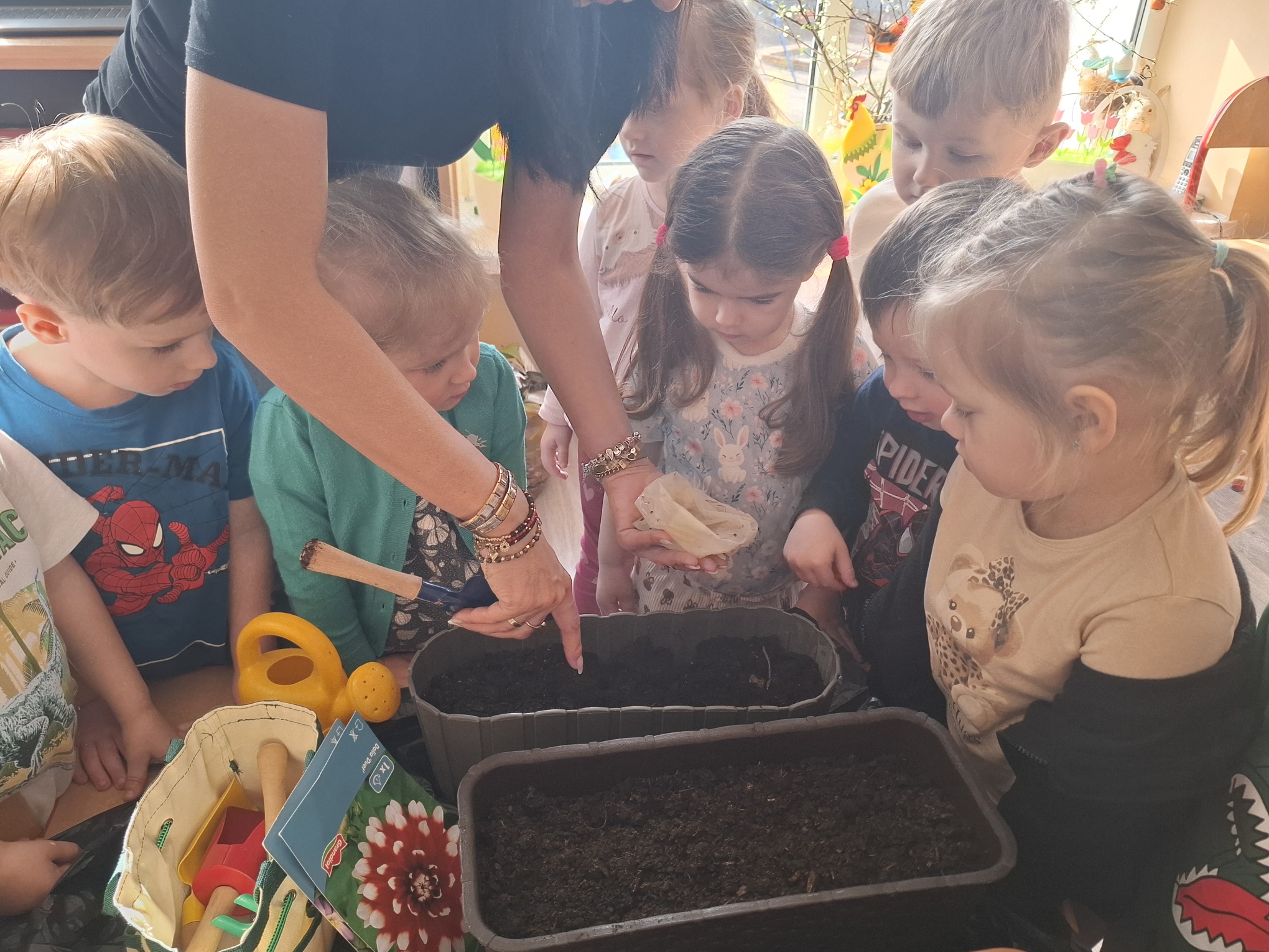 W minionym tygodniu w przedszkolu realizowaliśmy temat „Wiosenne prace w ogrodzie”.