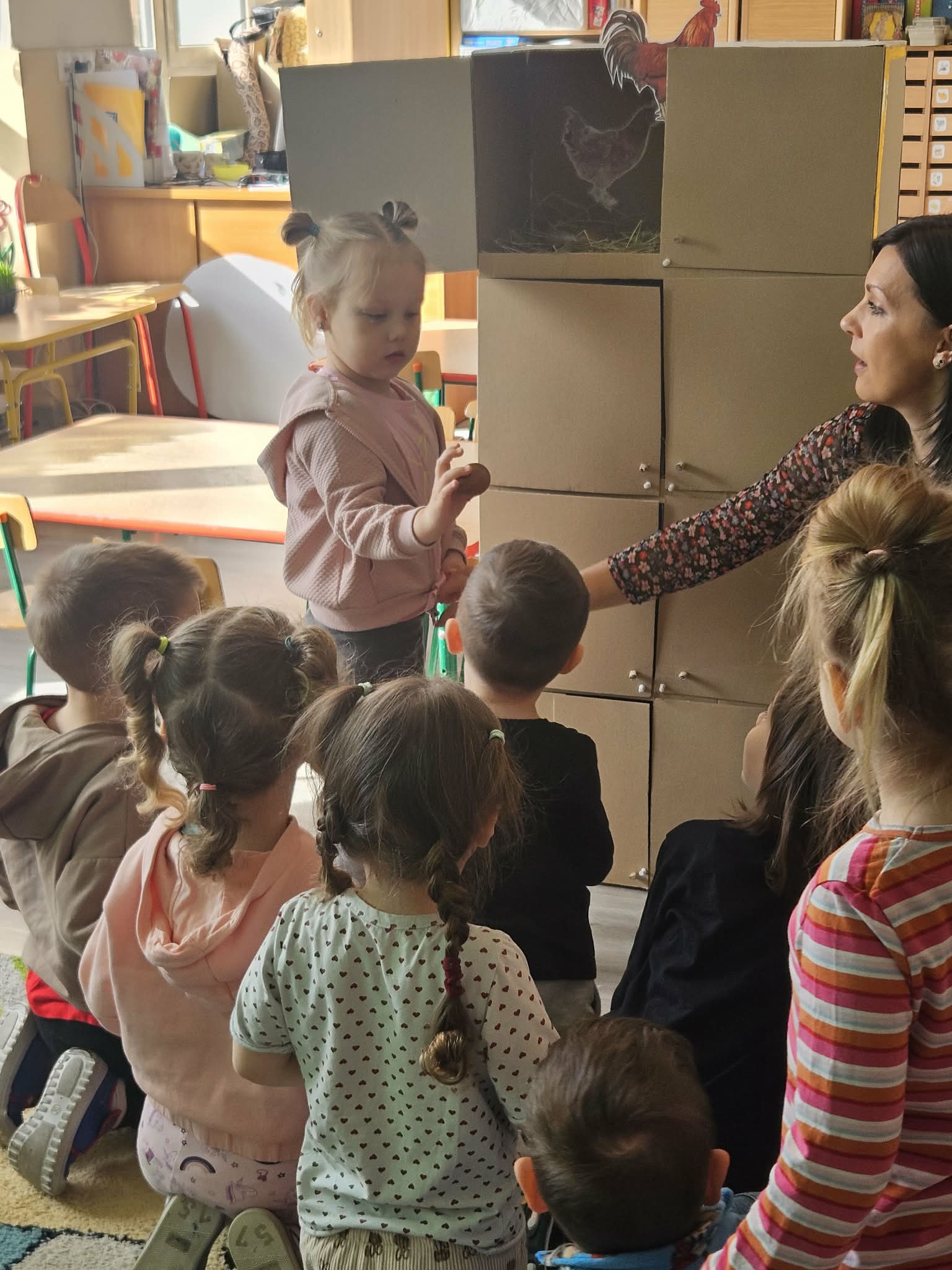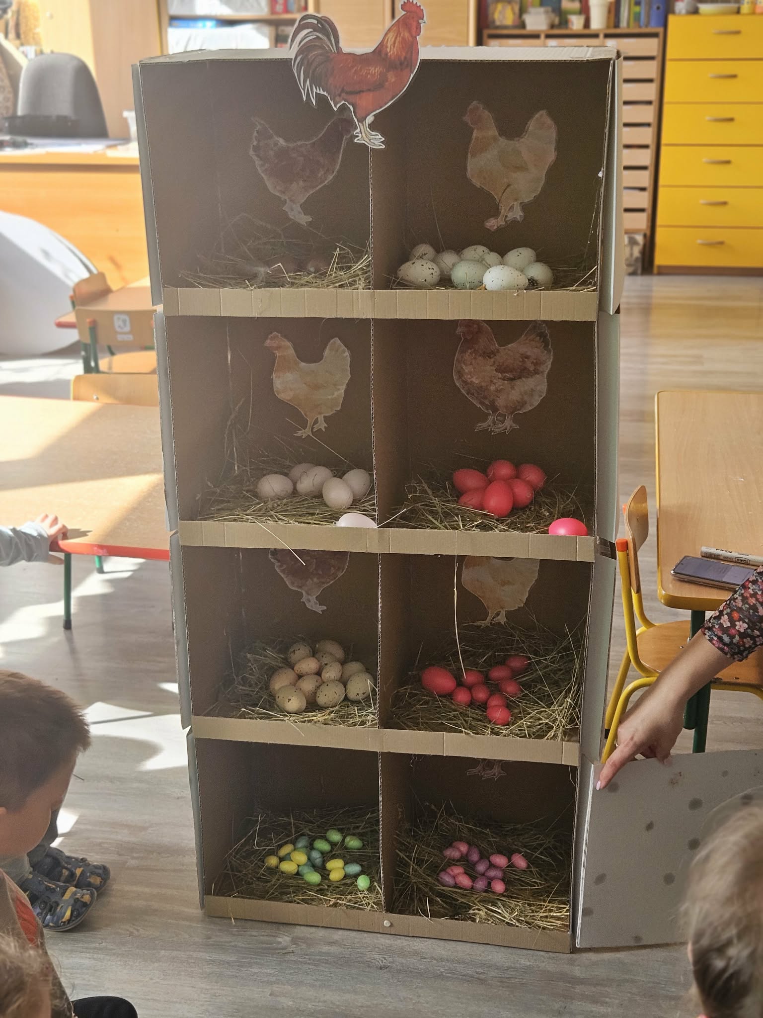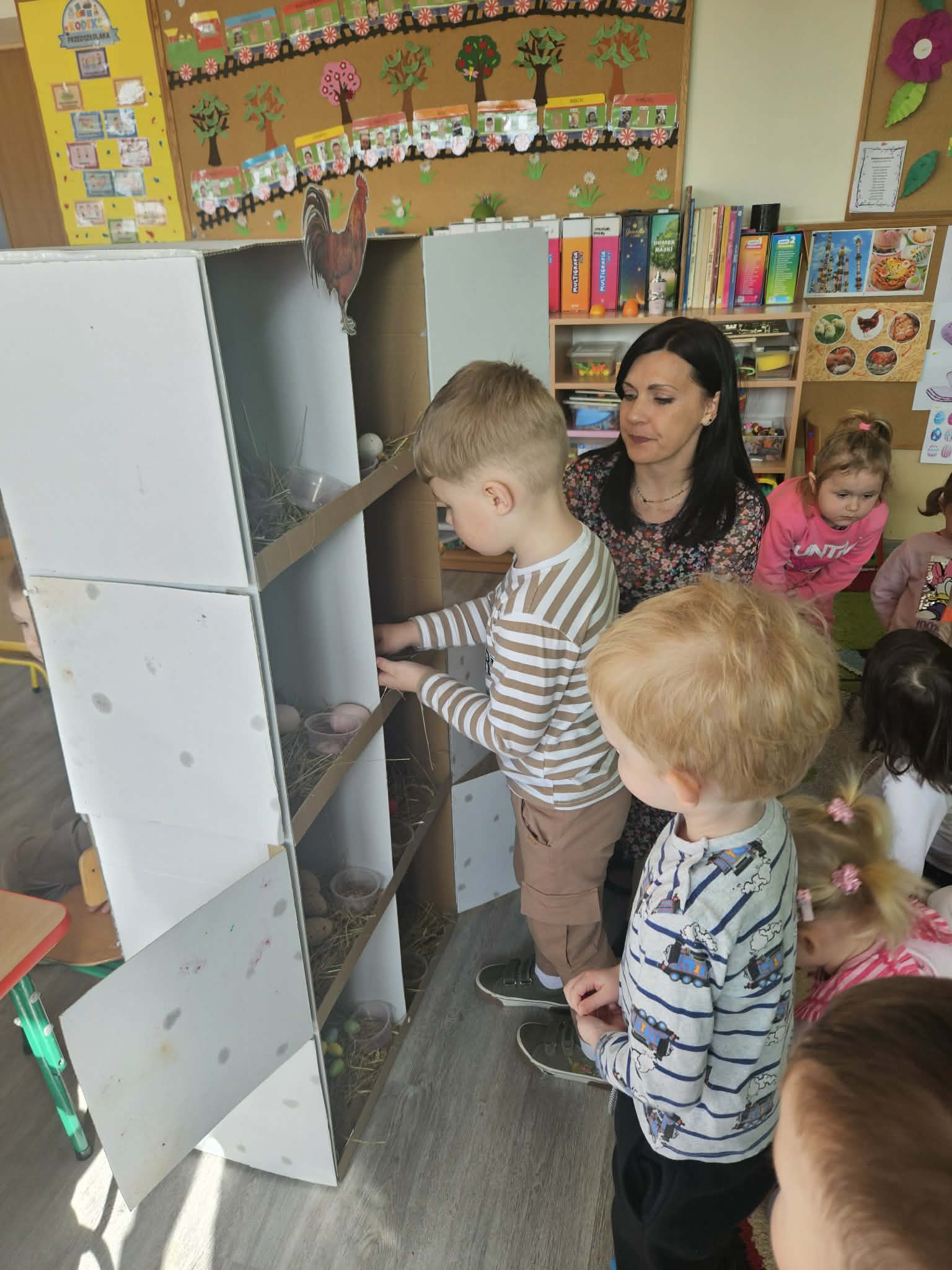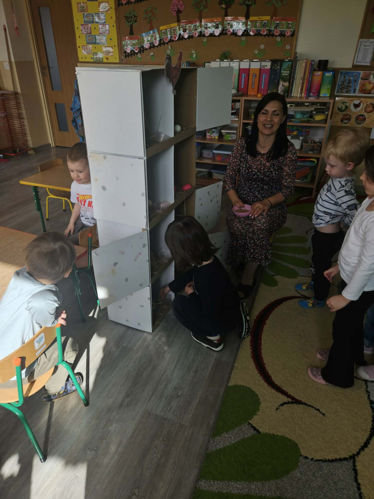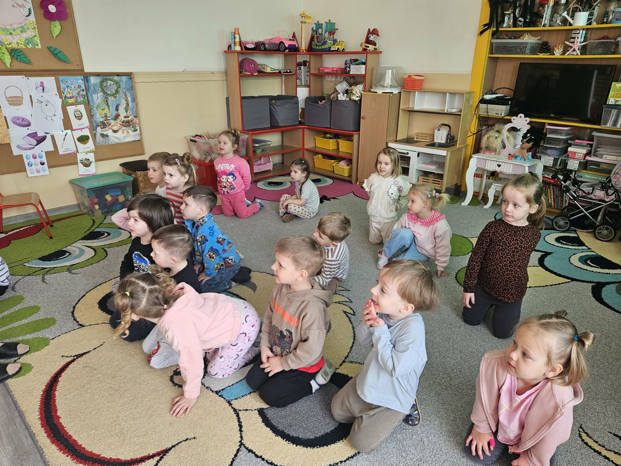 W minionym tygodniu dzieci przygotowywały się do Świąt Wielkanocnych, poznając tradycje i zwyczaje związane z tym wyjątkowym czasem. Rozmawiały o symbolach Wielkanocy (pisanki, baranek, koszyczek wielkanocny, kurczaczek), poznawały tradycje, takie jak święcenie pokarmów czy Śmigus-Dyngus. Wykonywały prace plastyczne – ozdabiały pisanki, tworzyły koszyczki oraz wielkanocne dekoracje, obserwowały kurnik i jajka.
