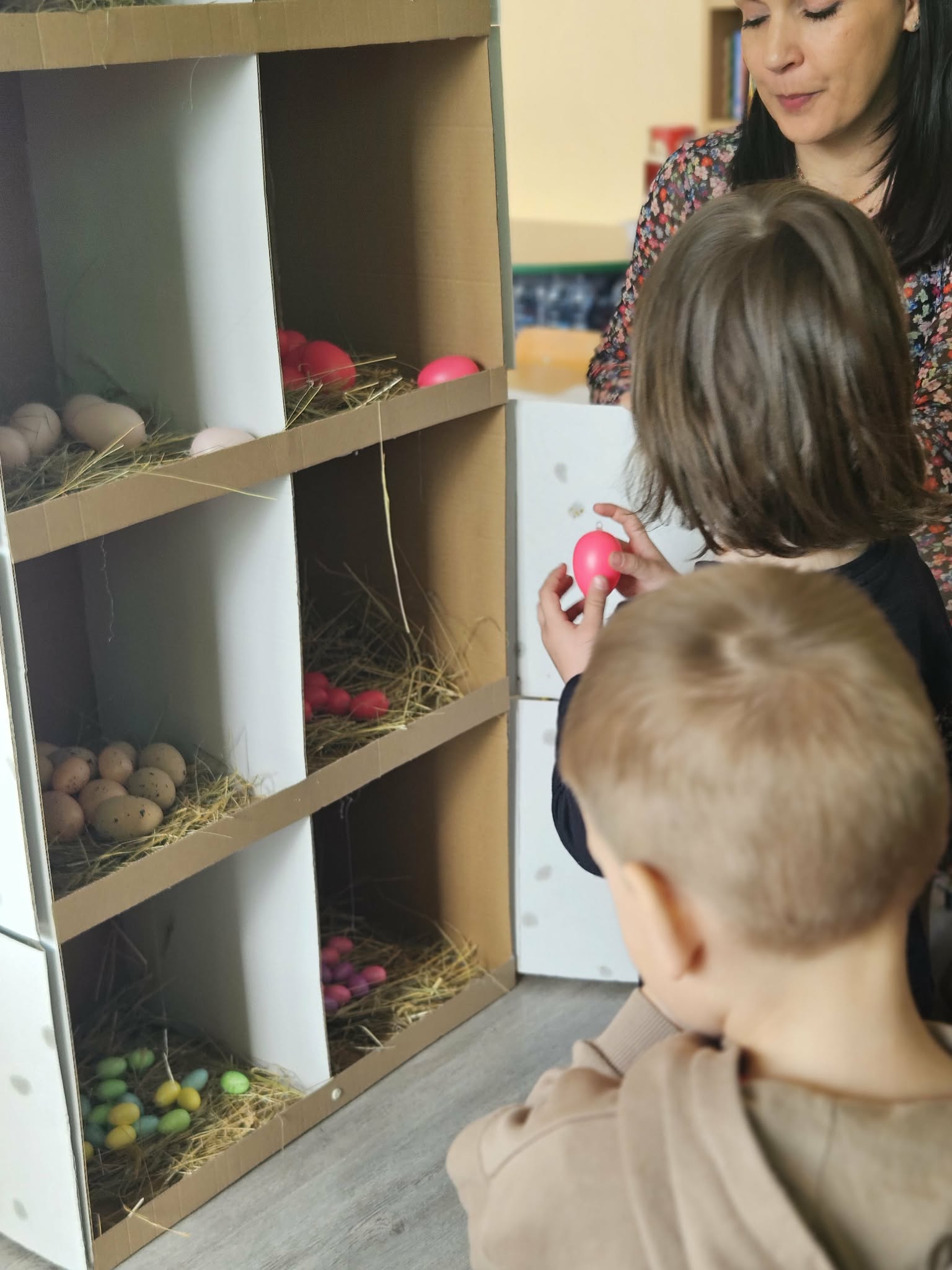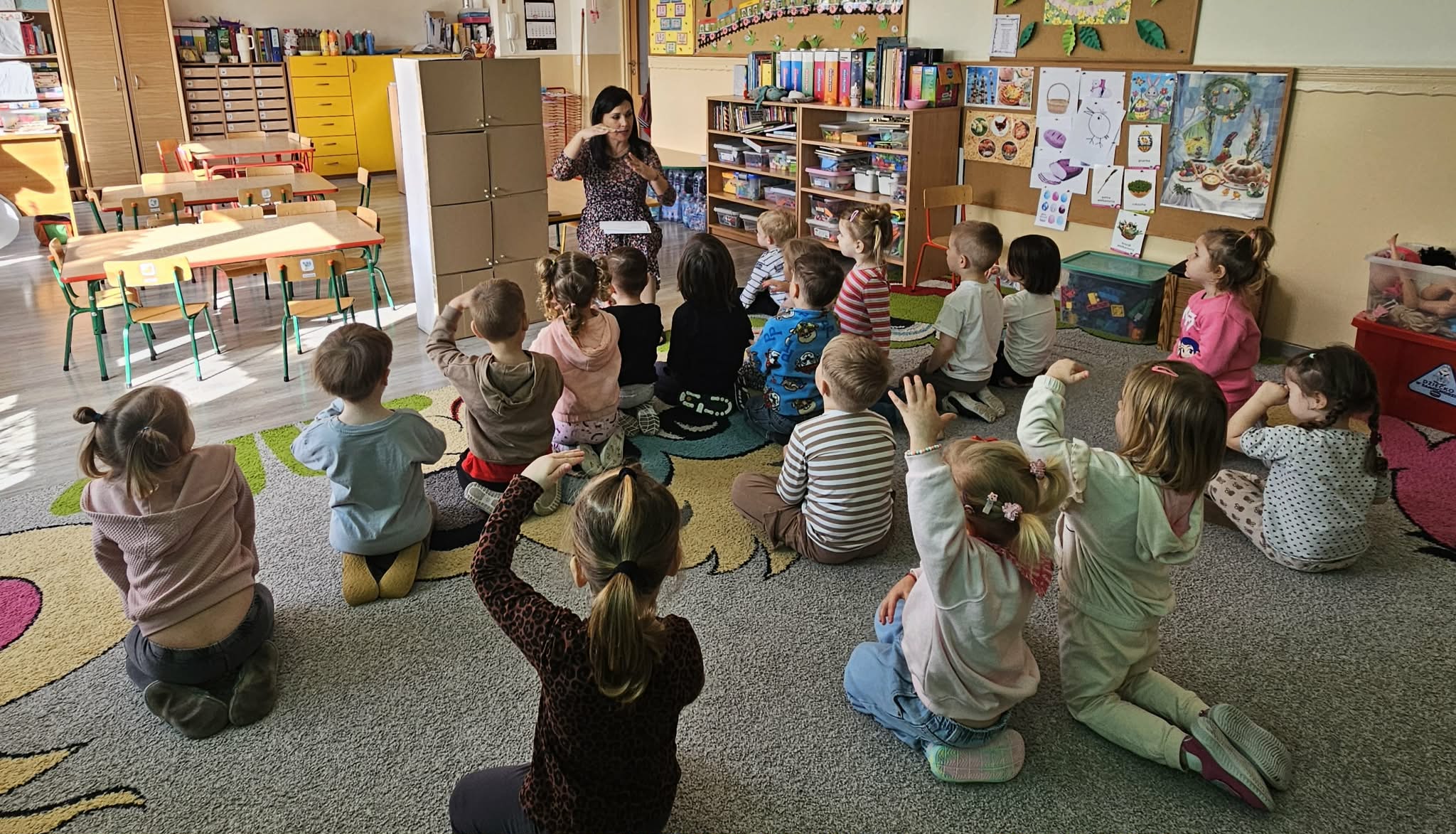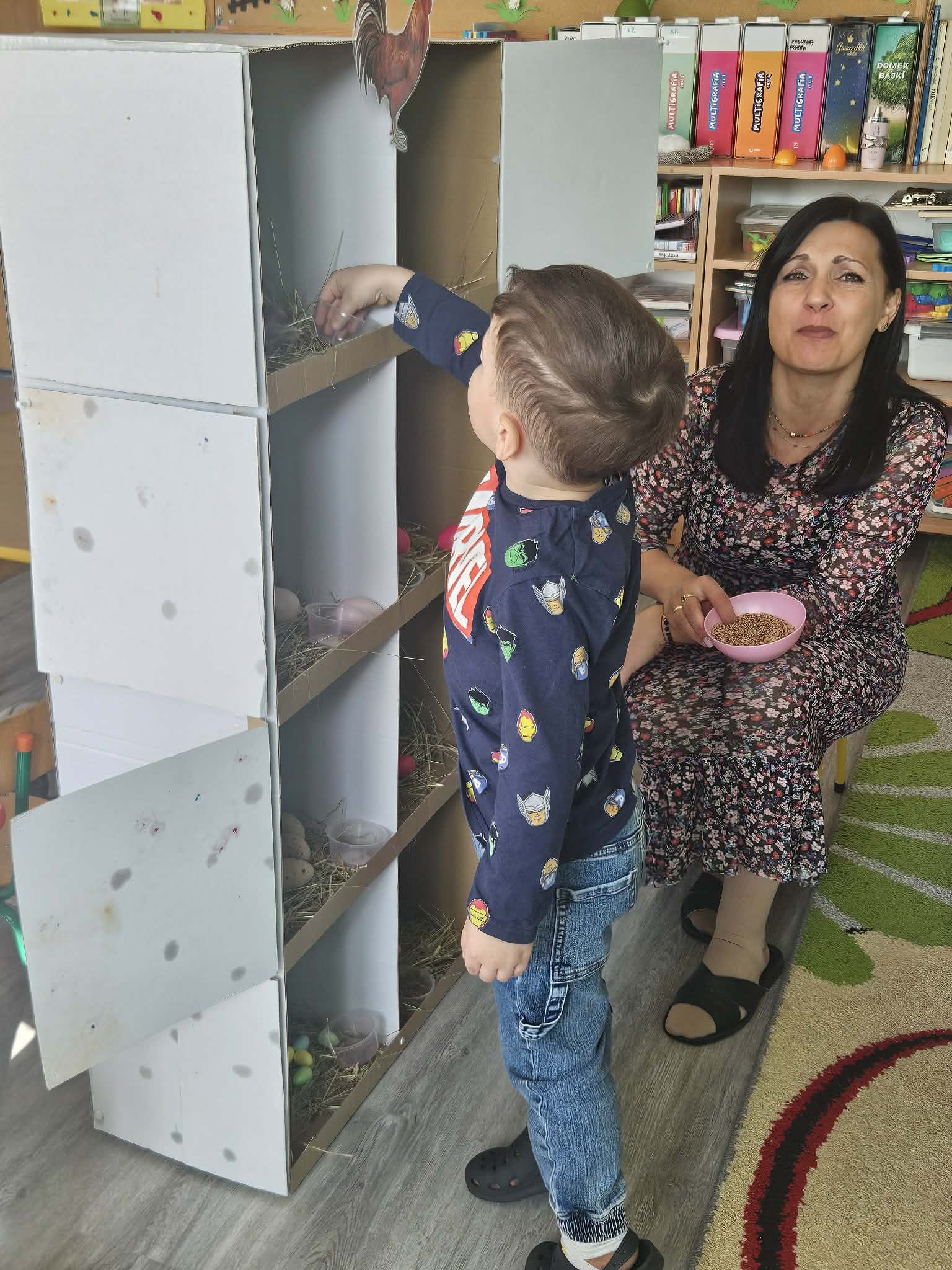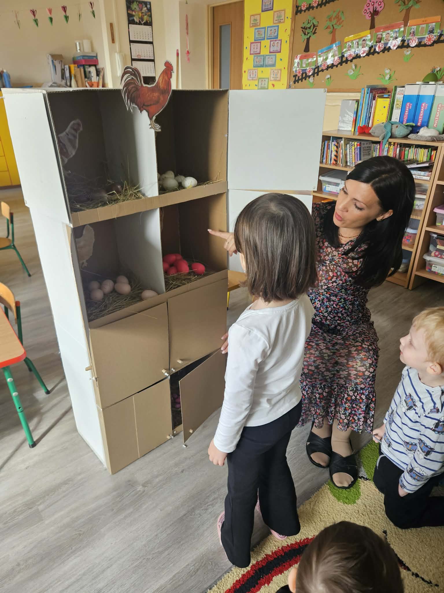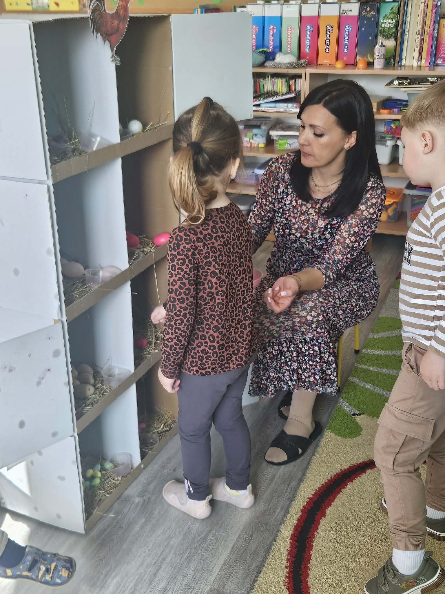 W minionym tygodniu dzieci przygotowywały się do Świąt Wielkanocnych, poznając tradycje i zwyczaje związane z tym wyjątkowym czasem. Rozmawiały o symbolach Wielkanocy (pisanki, baranek, koszyczek wielkanocny, kurczaczek), poznawały tradycje, takie jak święcenie pokarmów czy Śmigus-Dyngus. Wykonywały prace plastyczne – ozdabiały pisanki, tworzyły koszyczki oraz wielkanocne dekoracje, obserwowały kurnik i jajka.