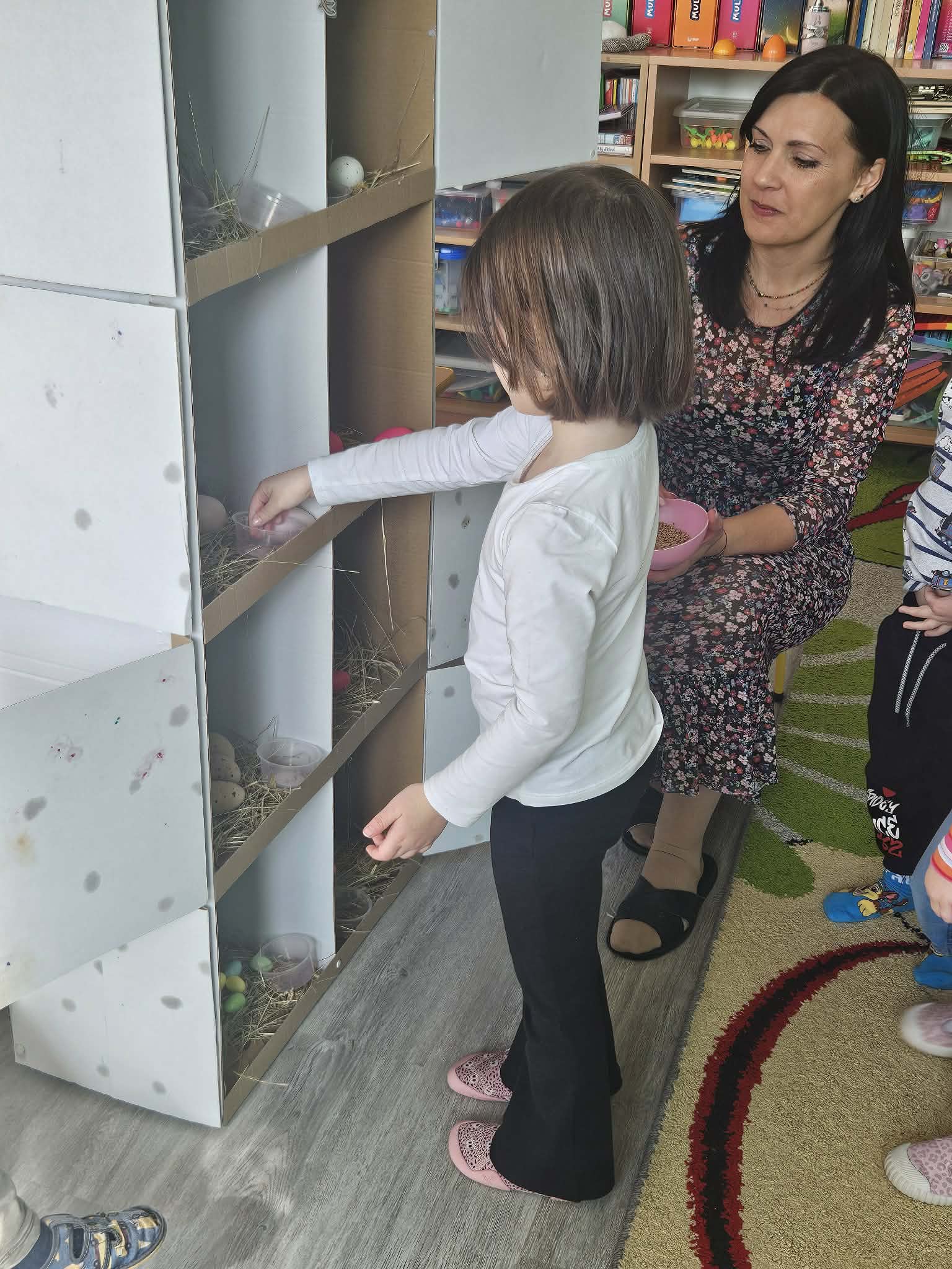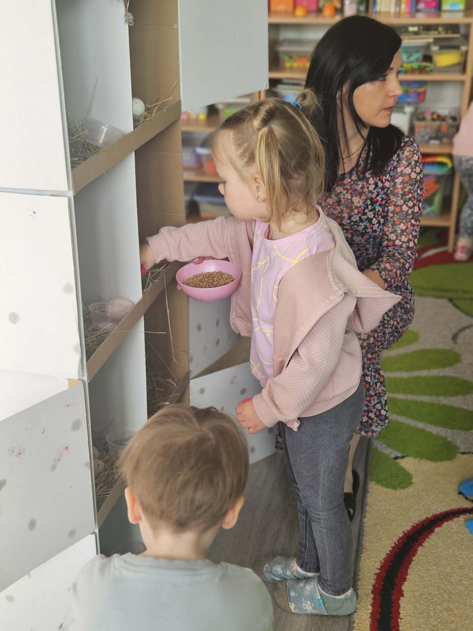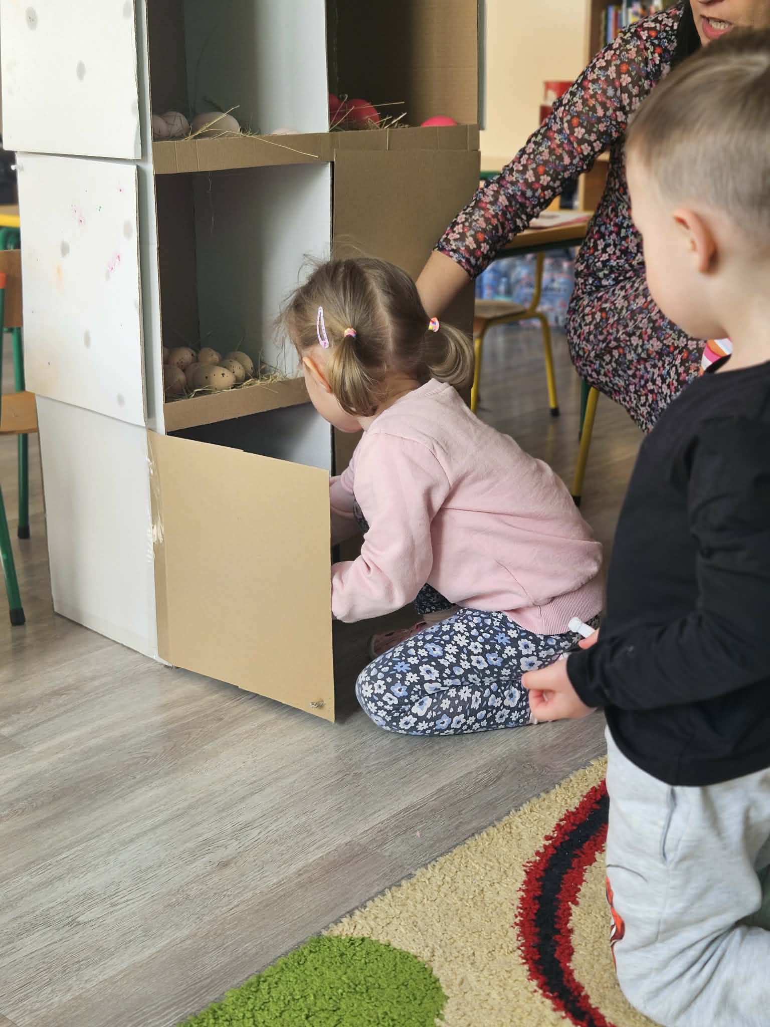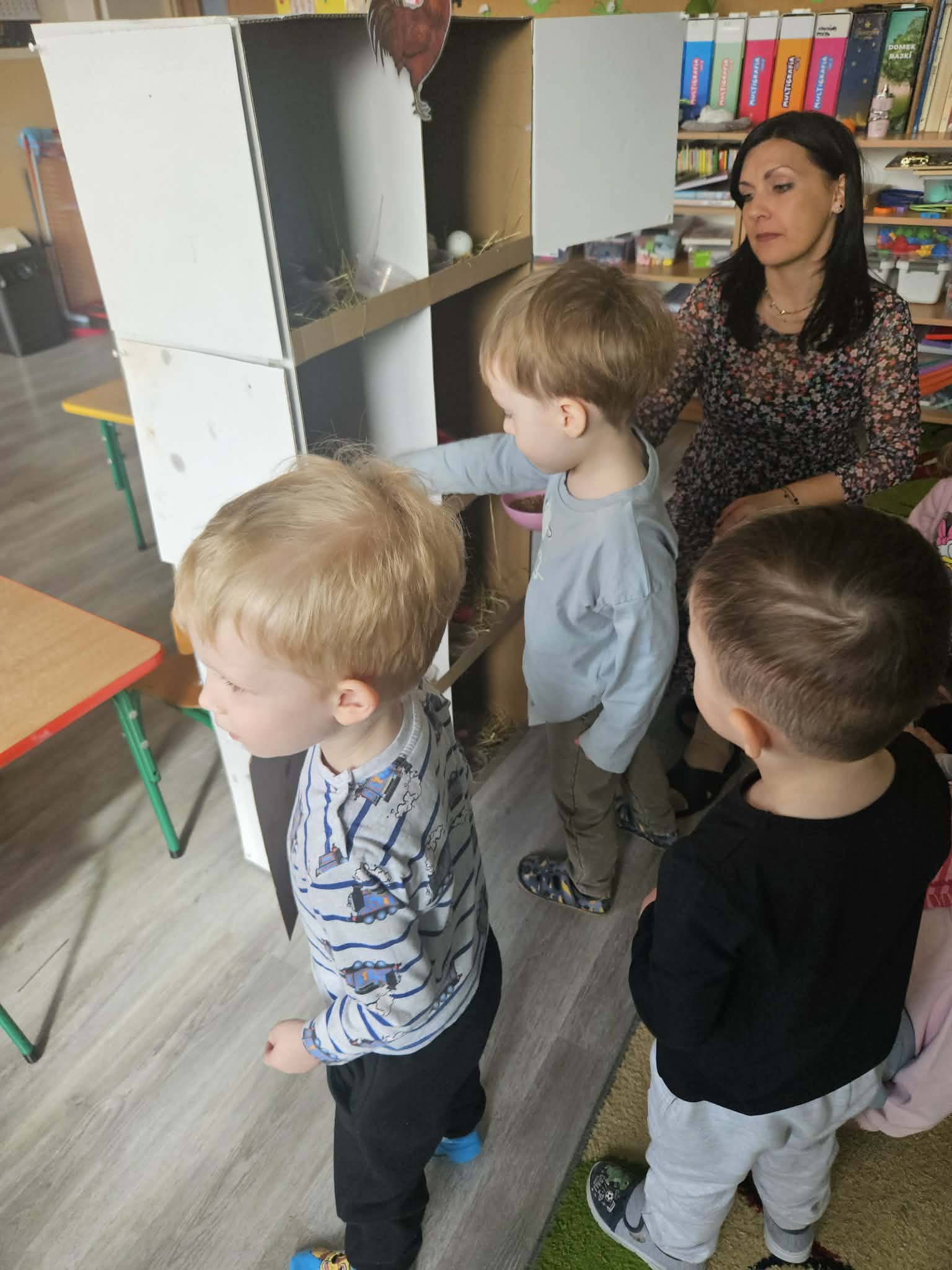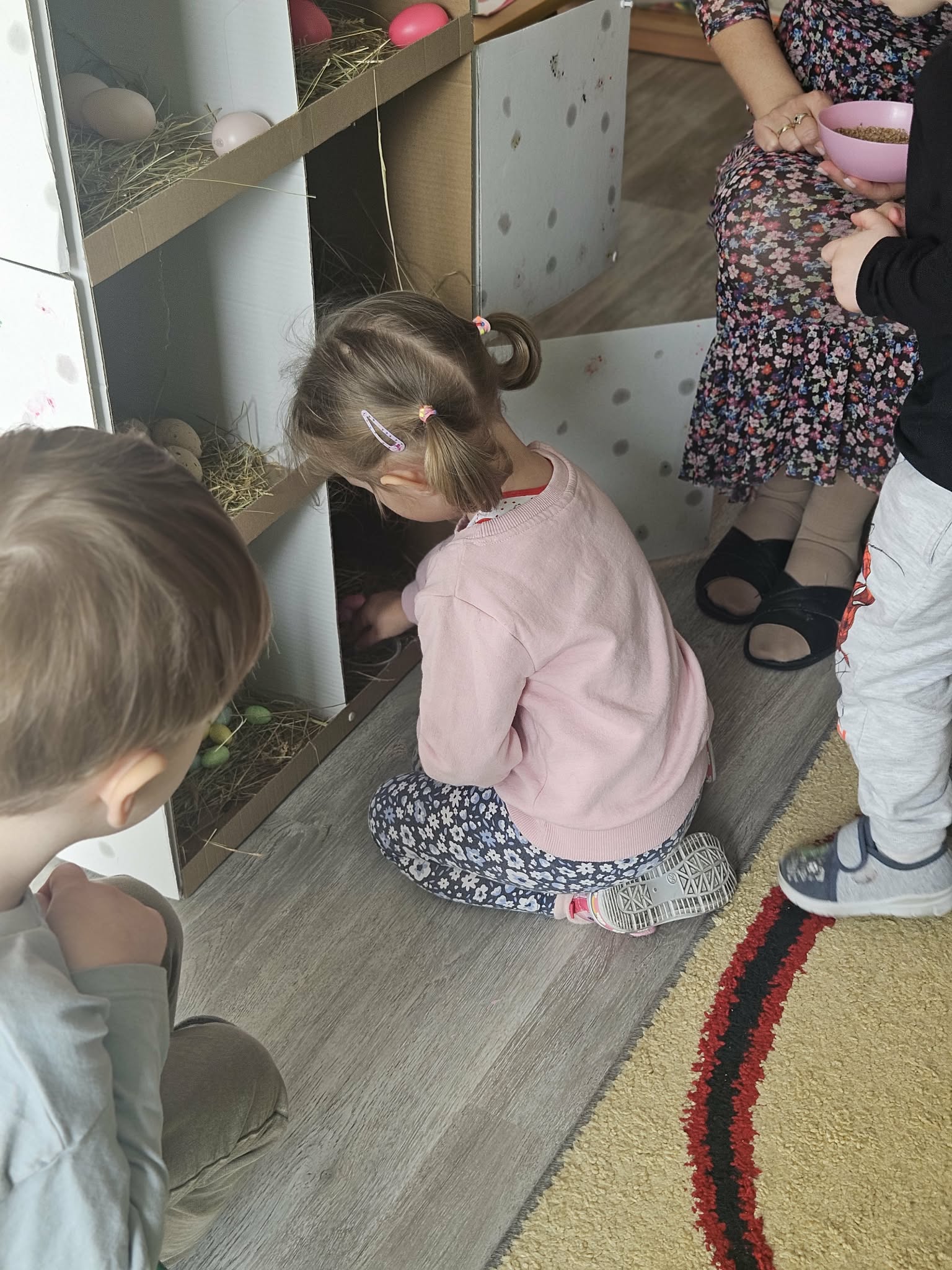 W minionym tygodniu dzieci przygotowywały się do Świąt Wielkanocnych, poznając tradycje i zwyczaje związane z tym wyjątkowym czasem. Rozmawiały o symbolach Wielkanocy (pisanki, baranek, koszyczek wielkanocny, kurczaczek), poznawały tradycje, takie jak święcenie pokarmów czy Śmigus-Dyngus. Wykonywały prace plastyczne – ozdabiały pisanki, tworzyły koszyczki oraz wielkanocne dekoracje, obserwowały kurnik i jajka.