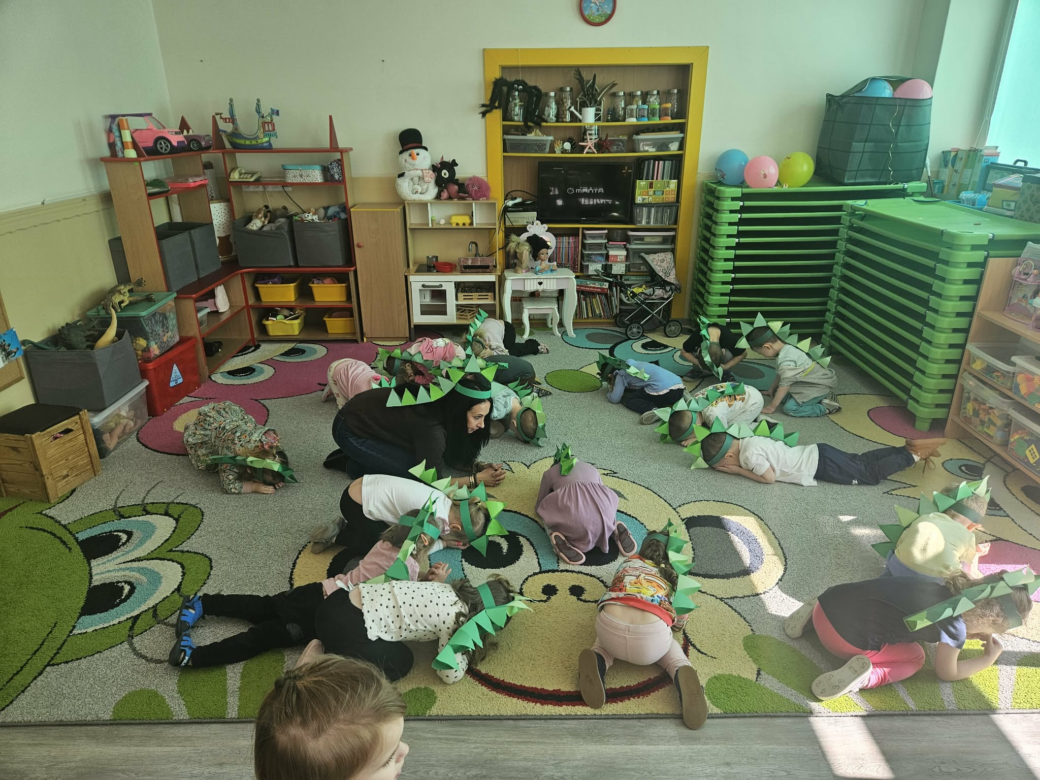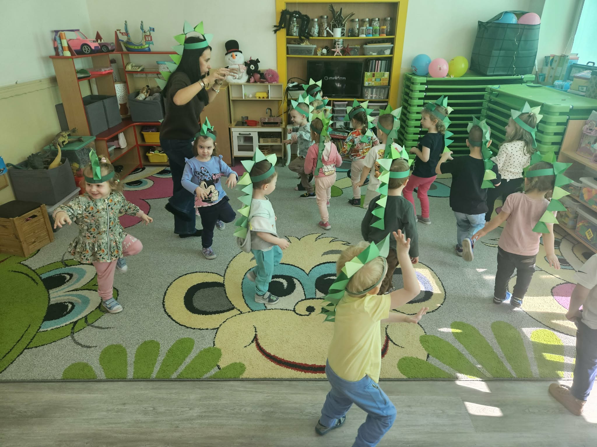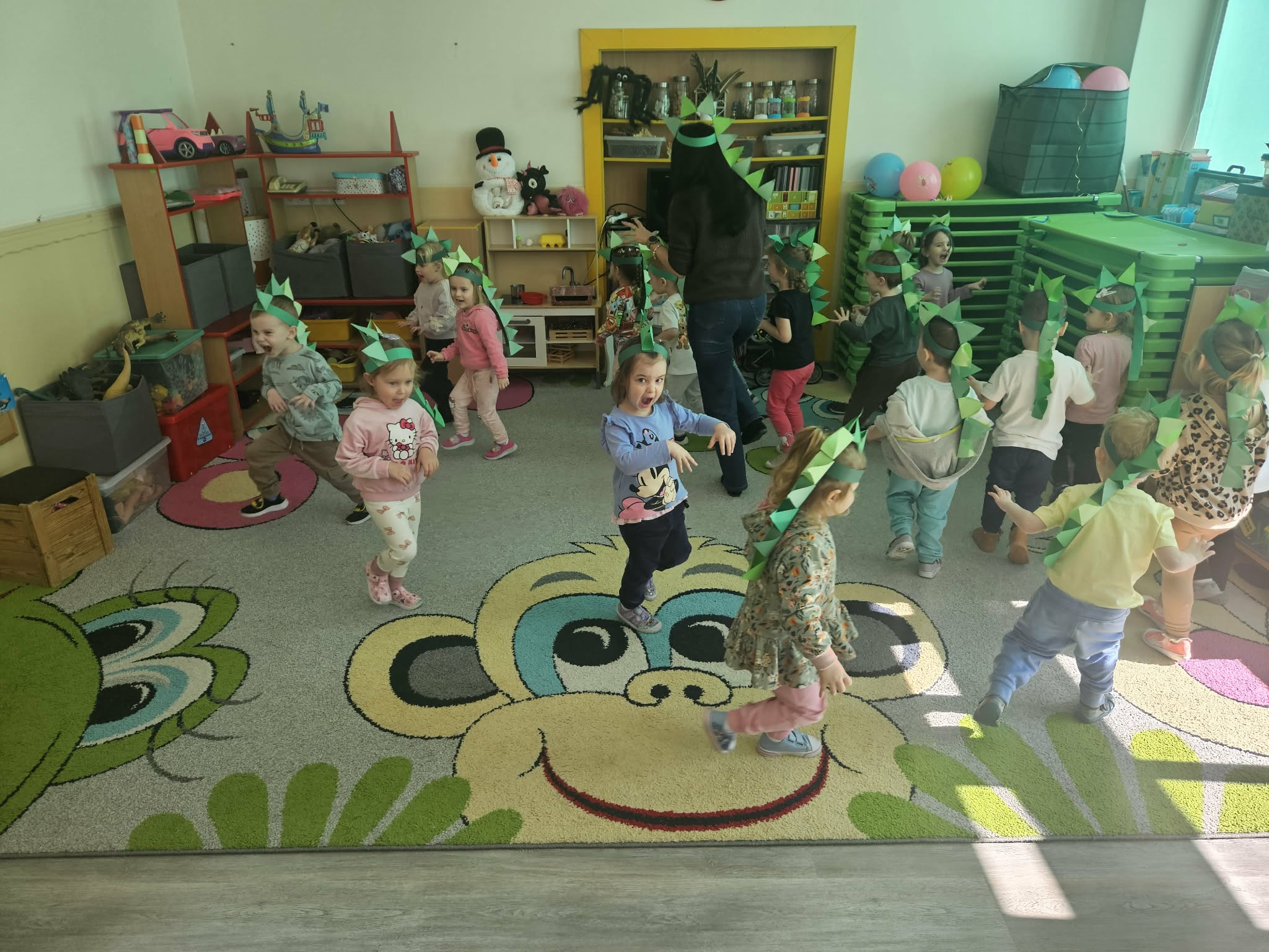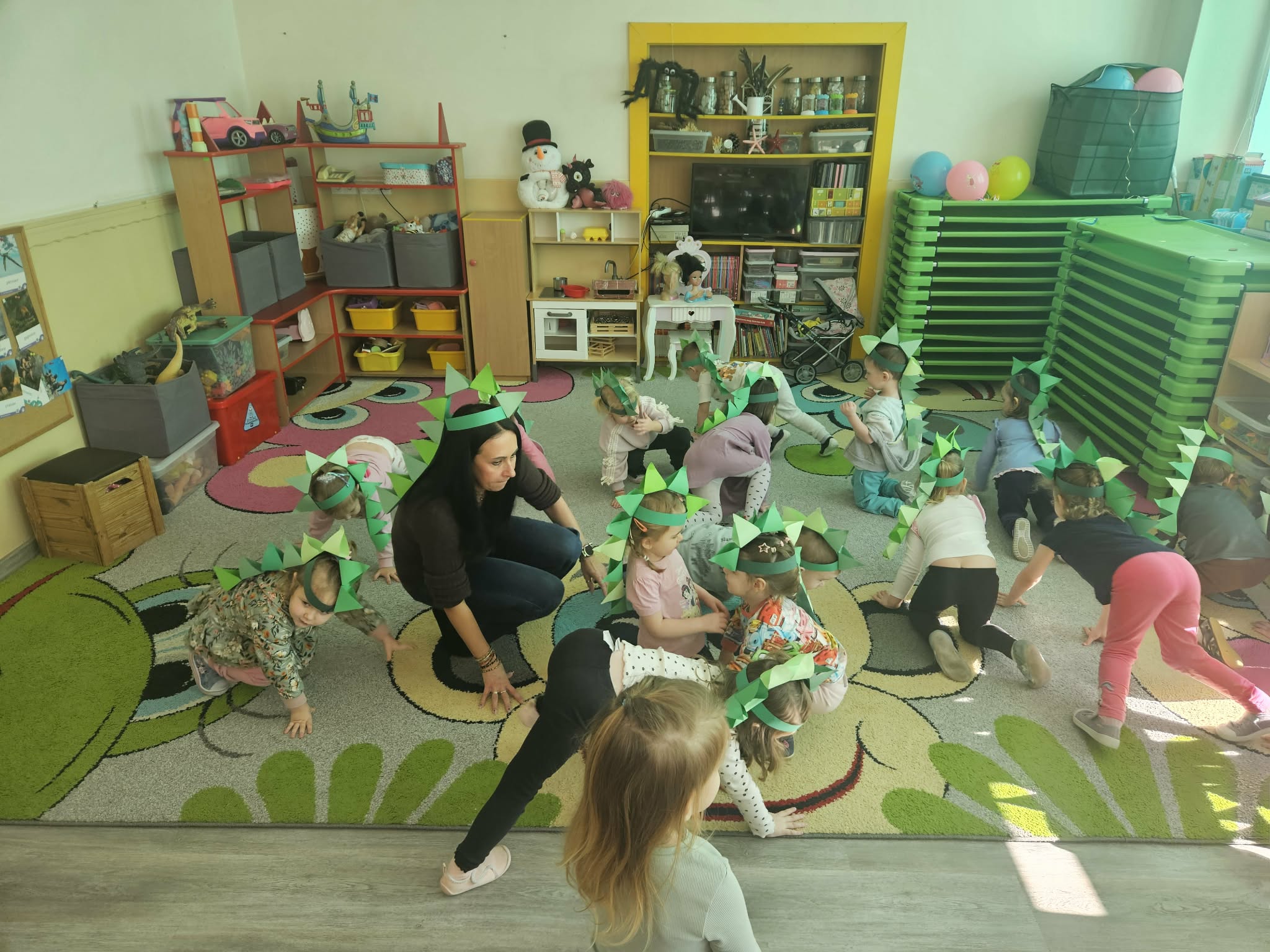 Podczas ostatniego tygodnia dzieci przeniosły się w niezwykłą podróż do prehistorycznego świata. Przedszkolaki poznały ciekawostki na temat dinozaurów – dowiedziały się, że były to ogromne zwierzęta żyjące na Ziemi miliony lat temu. Rozmawialiśmy o tym, czym się żywiły oraz jak wyglądało środowisko, w którym żyły.
