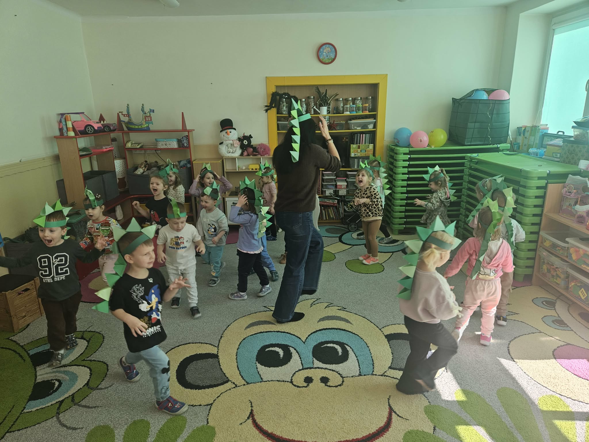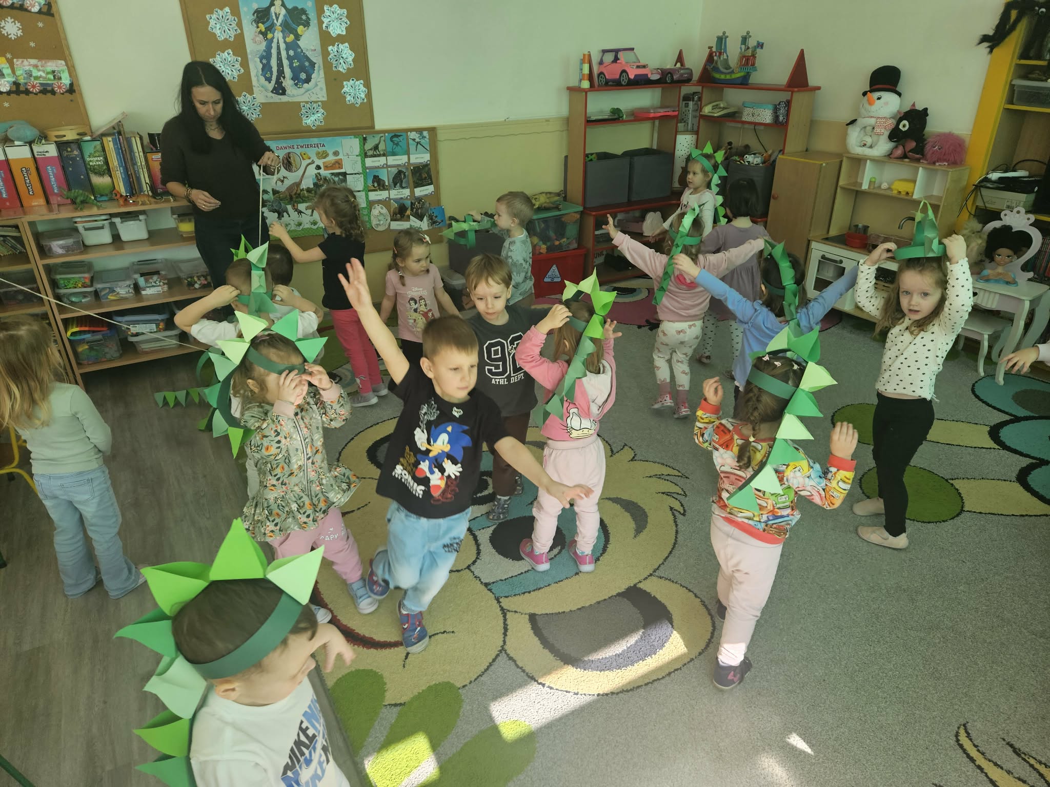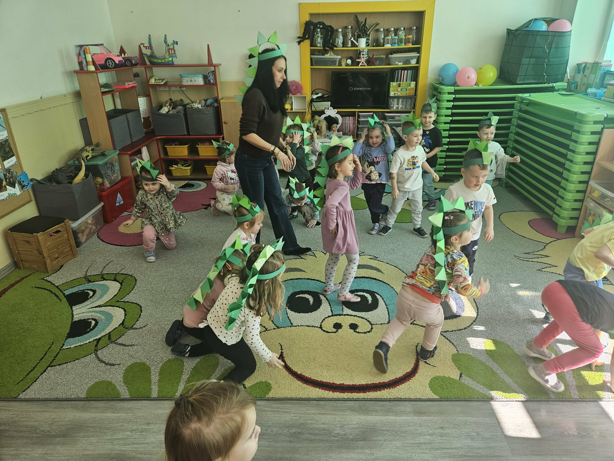 Podczas ostatniego tygodnia dzieci przeniosły się w niezwykłą podróż do prehistorycznego świata. Przedszkolaki poznały ciekawostki na temat dinozaurów – dowiedziały się, że były to ogromne zwierzęta żyjące na Ziemi miliony lat temu. Rozmawialiśmy o tym, czym się żywiły oraz jak wyglądało środowisko, w którym żyły.