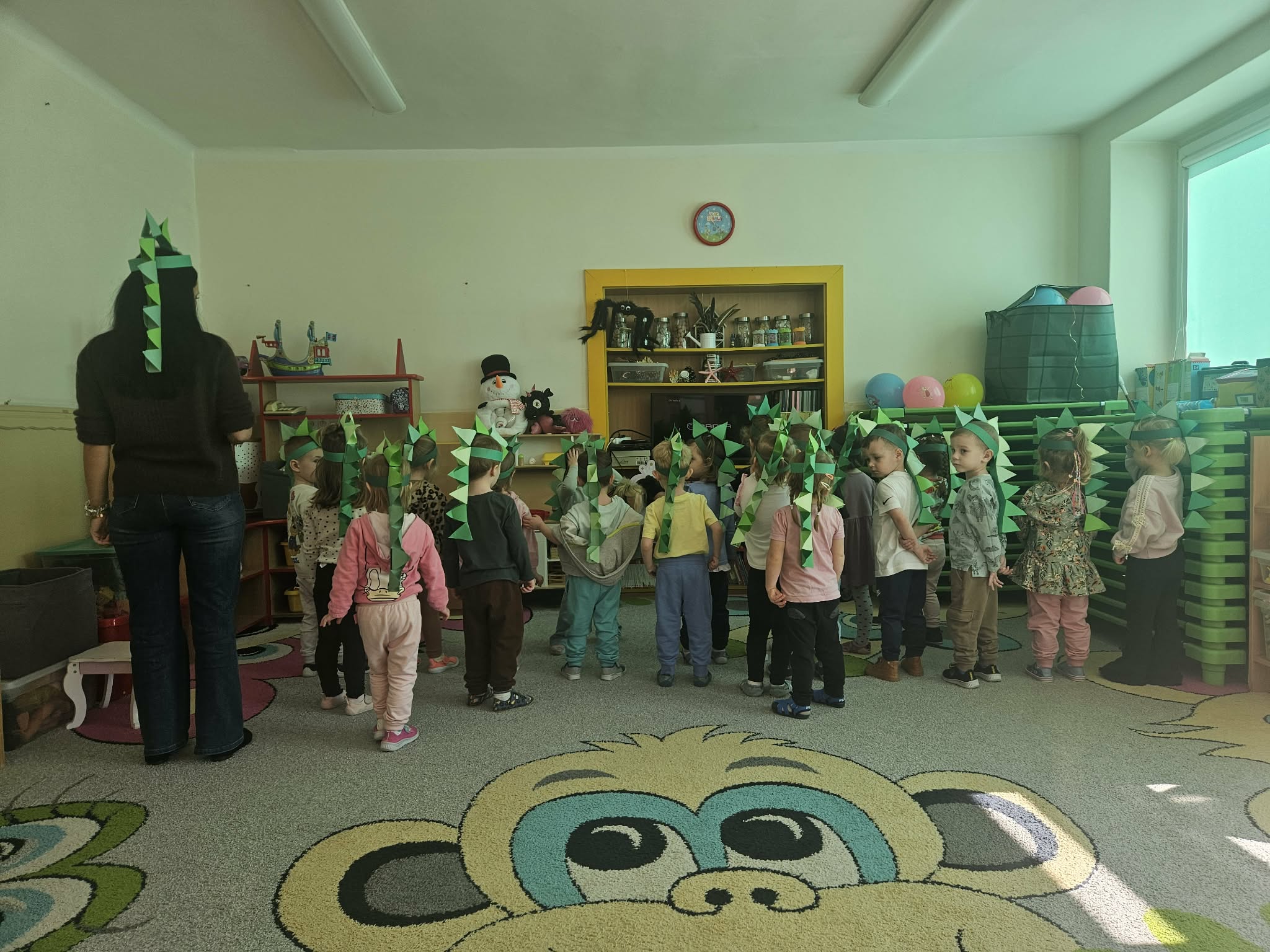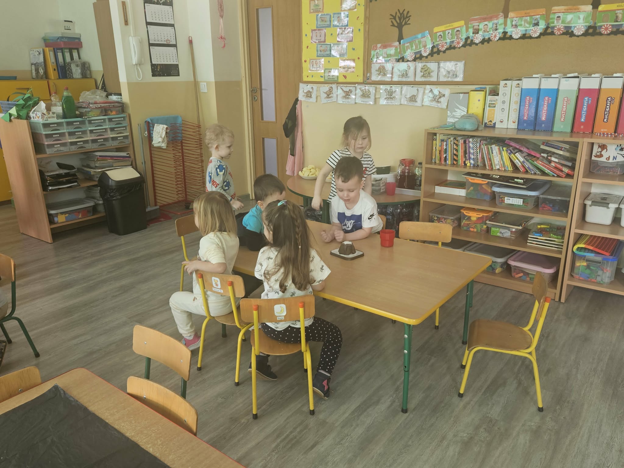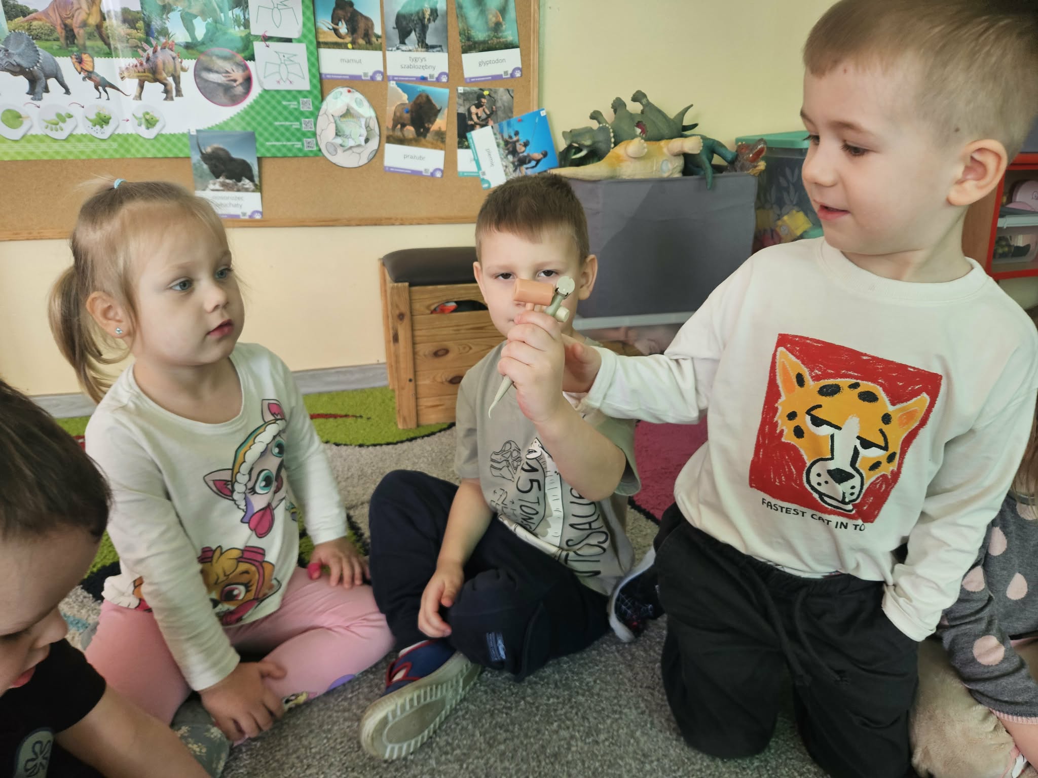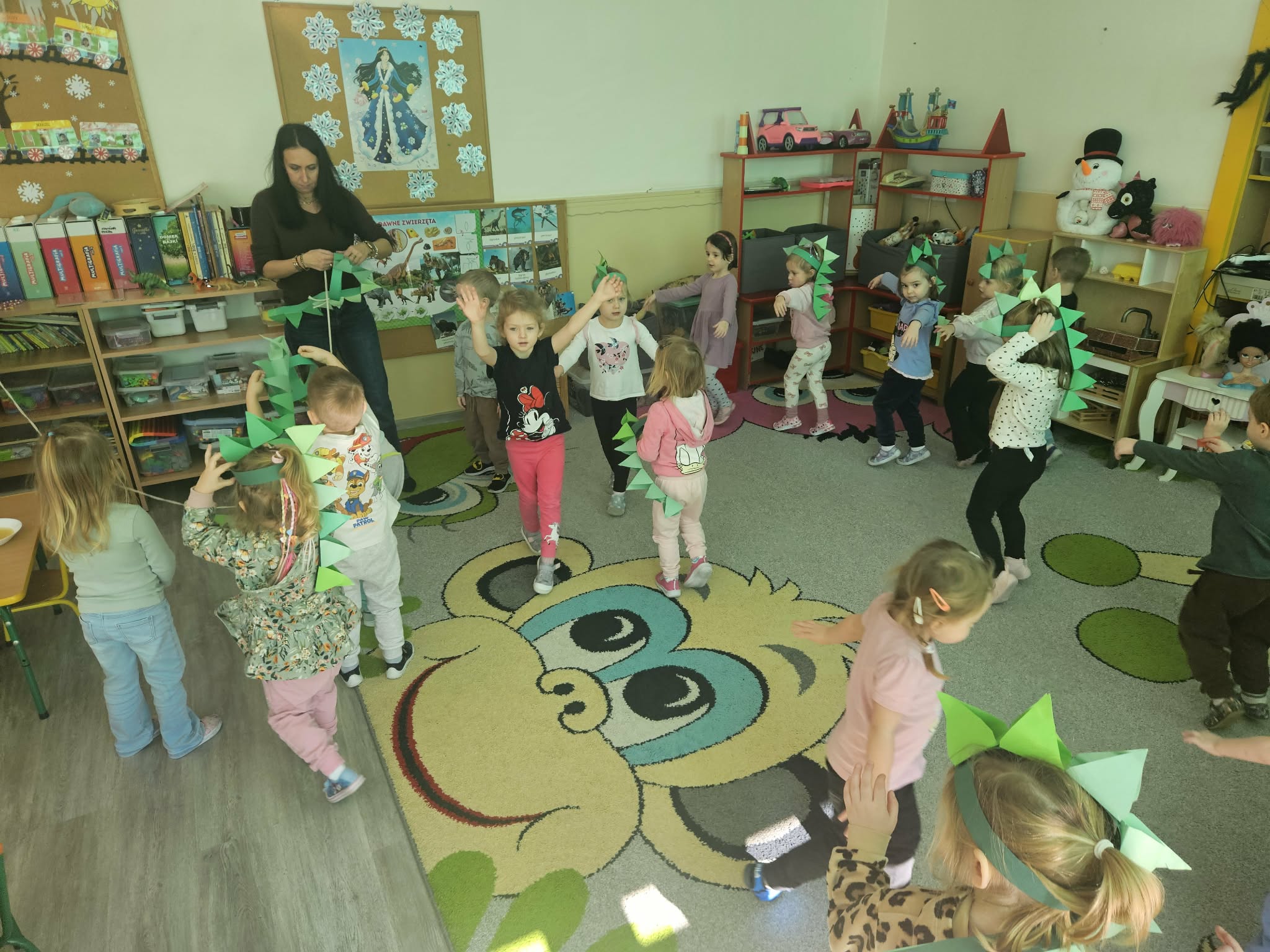 Podczas ostatniego tygodnia dzieci przeniosły się w niezwykłą podróż do prehistorycznego świata. Przedszkolaki poznały ciekawostki na temat dinozaurów – dowiedziały się, że były to ogromne zwierzęta żyjące na Ziemi miliony lat temu. Rozmawialiśmy o tym, czym się żywiły oraz jak wyglądało środowisko, w którym żyły.